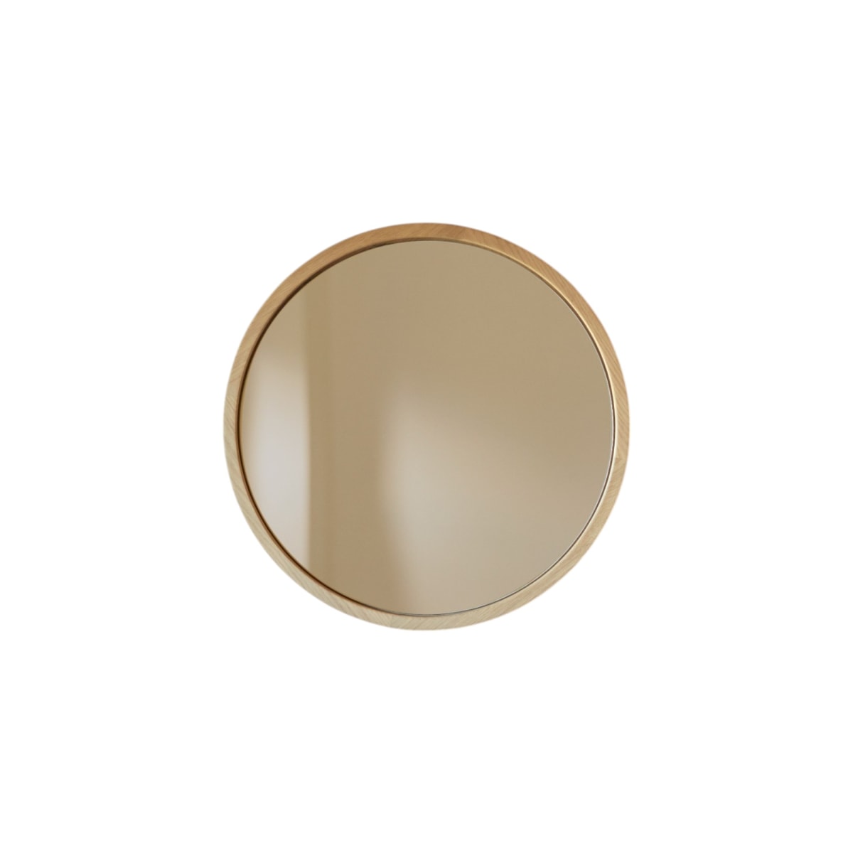 De ronde Fanie spiegel van 50 cm in FSC®-gecertificeerd massief eikenhout brengt een vleugje natuurlijke en tijdloze elegantie in huis. Het warme en zorgvuldig geselecteerde, lichtgekleurde hout past bij echt elke stijl, van eigentijds tot klassiek.