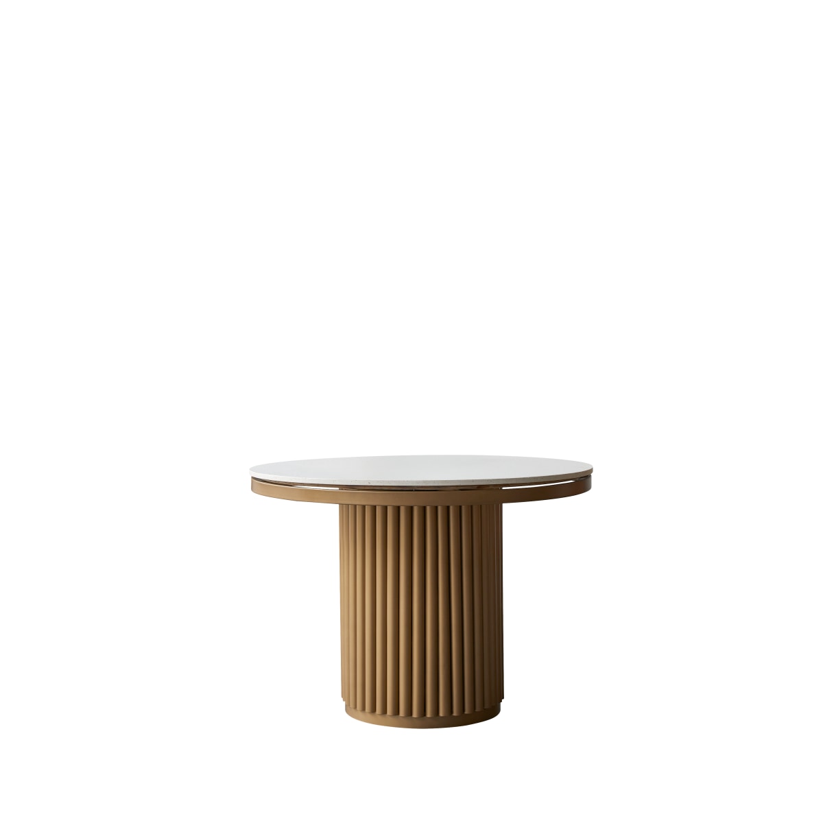 Een tafel als een kunstwerk: de ronde tafel Isaure van metaal en terrazzo verfraait uw interieur! De perfecte harmonie tussen design en hedendaagse kunst in een sculptuurachtig meubel: waardevol als een collector's item en bruikbaar als een alledaags meubel. De fijne details van het tafelblad van terrazzo, licht en gemakkelijk te reinigen materiaal, het metalen frame, dat de zuiverheid van het blad benadrukt, en de metalen centrale voet, die eveneens is geïnspireerd op antieke creaties, zullen u zeker bevallen. Kleine bonus: dankzij de centrale voet kunnen tot 6 personen comfortabel zitten! Afhankelijk van uw stemming kunt u hem combineren met Jonak-stoelen van massief teakhout zoals op onze foto of andere sobere stoelen van eender welk materiaal.