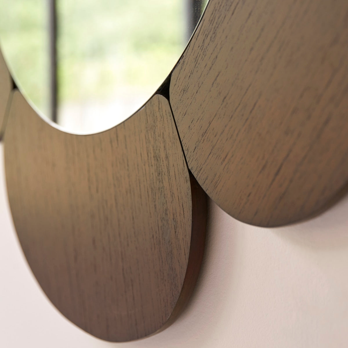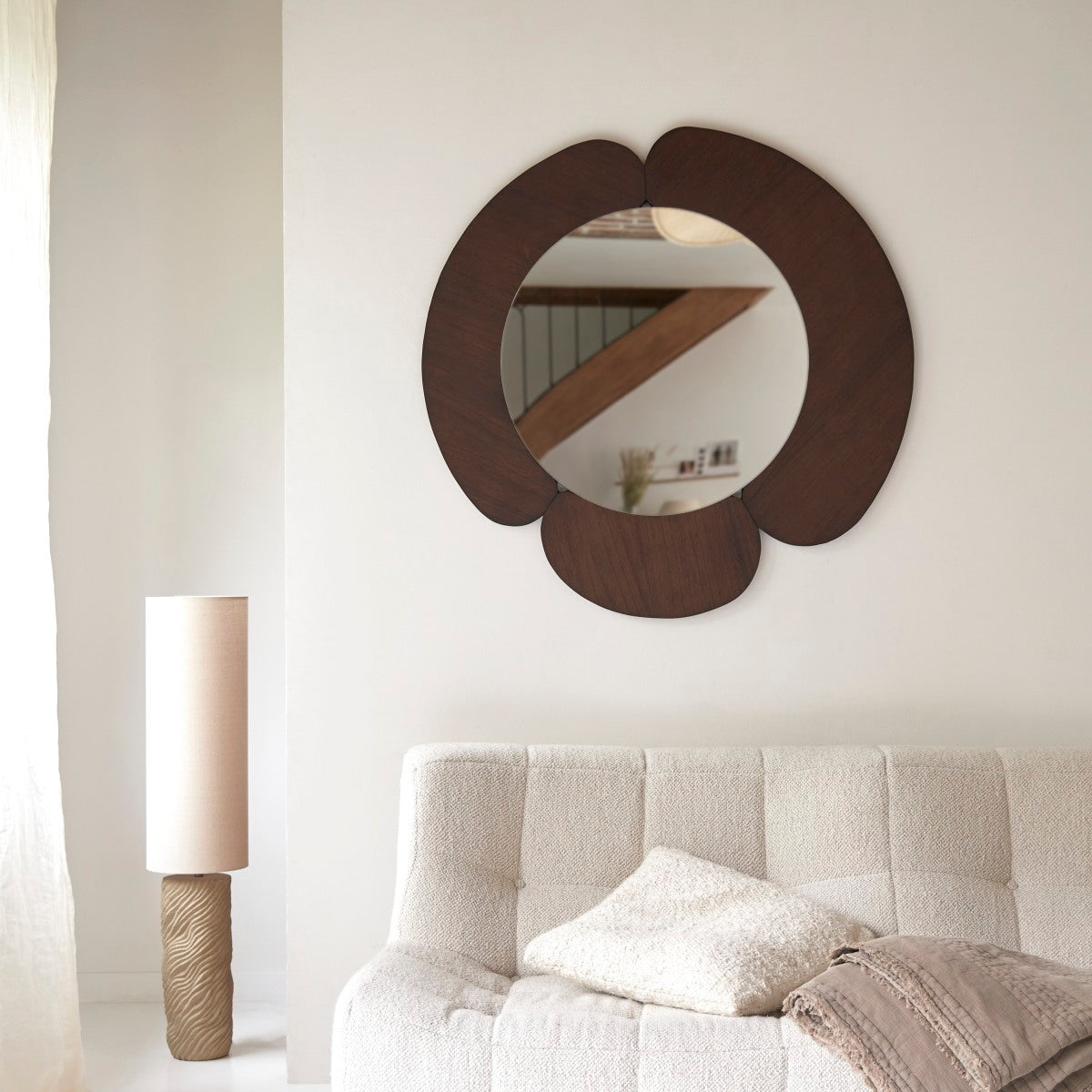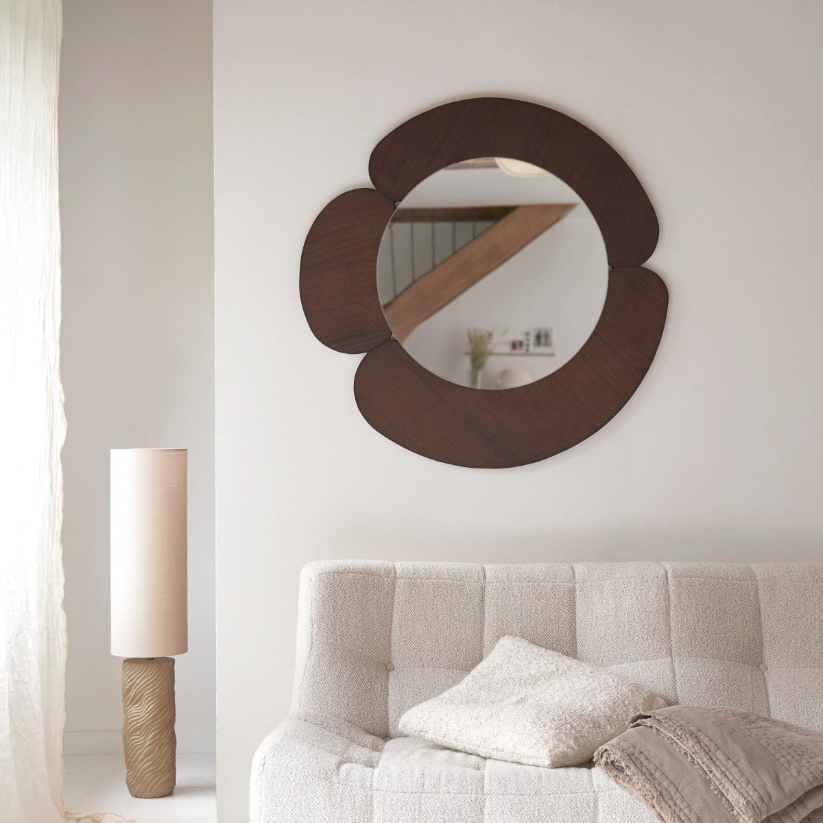 Als een bloem die op de muur groeit, brengt de ronde spiegel Sara in massief mindihout charme en karakter in uw huis. Hij is origineel en aantrekkelijk en zal niet onopgemerkt blijven: zowel in de woonkamer als in de hal, slaapkamer of badkamer is hij de ziel van uw huis. Kies zorgvuldig waar u hem plaatst zodat hij de ruimte visueel vergroot en speelt met het licht in de kamer.