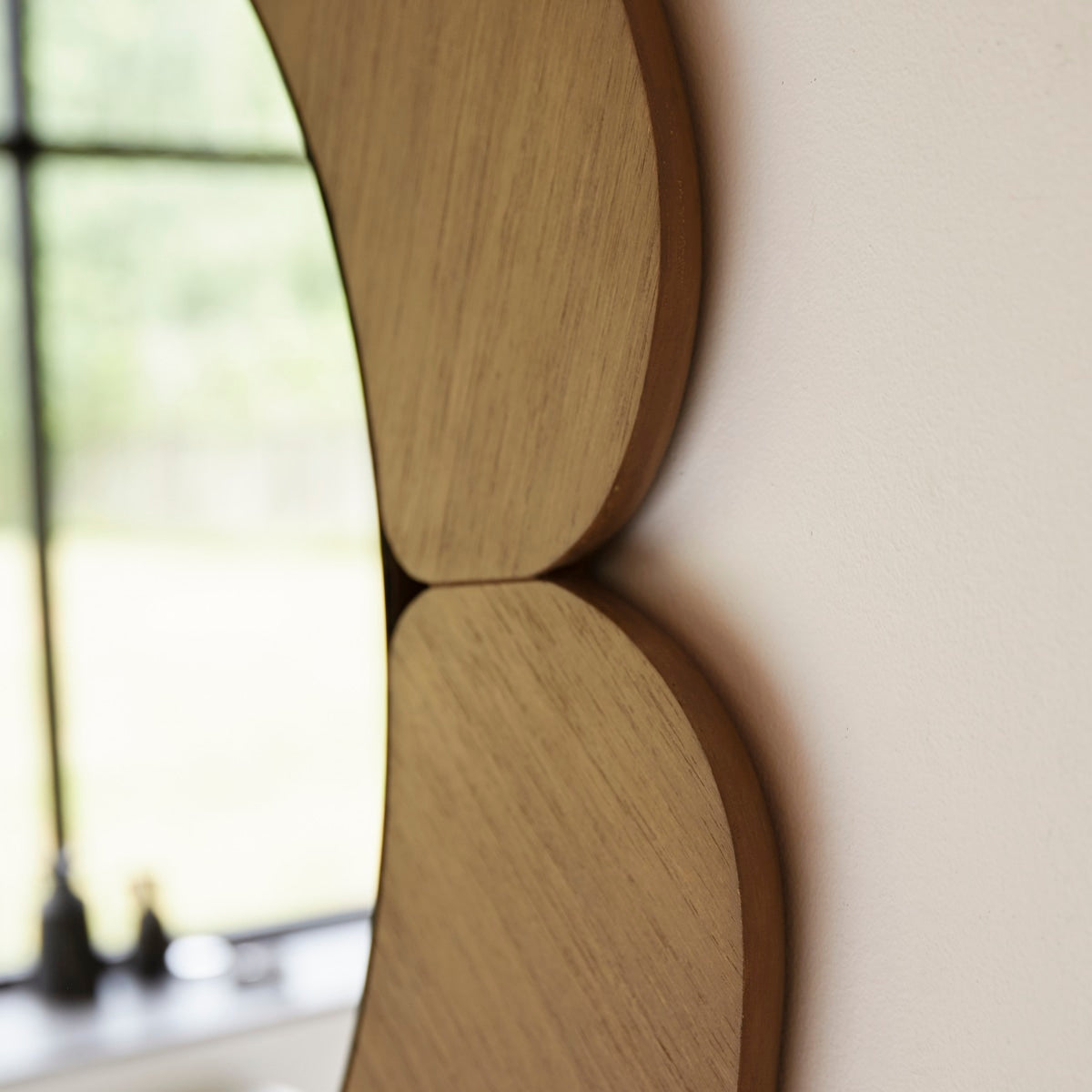 Met de decoratieve, originele en charmante ronde spiegel Sara in massief mindihout kunt u de ruimte opnieuw inrichten en spelen met het licht in een kamer. Hij is ideaal in de woonkamer boven de bank of het dressoir, maar ook perfect in de slaapkamer, hal of gang om een beetje extra karakter aan de ruimte toe te voegen.