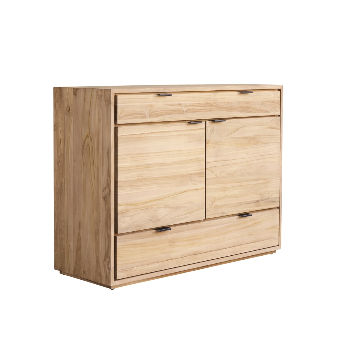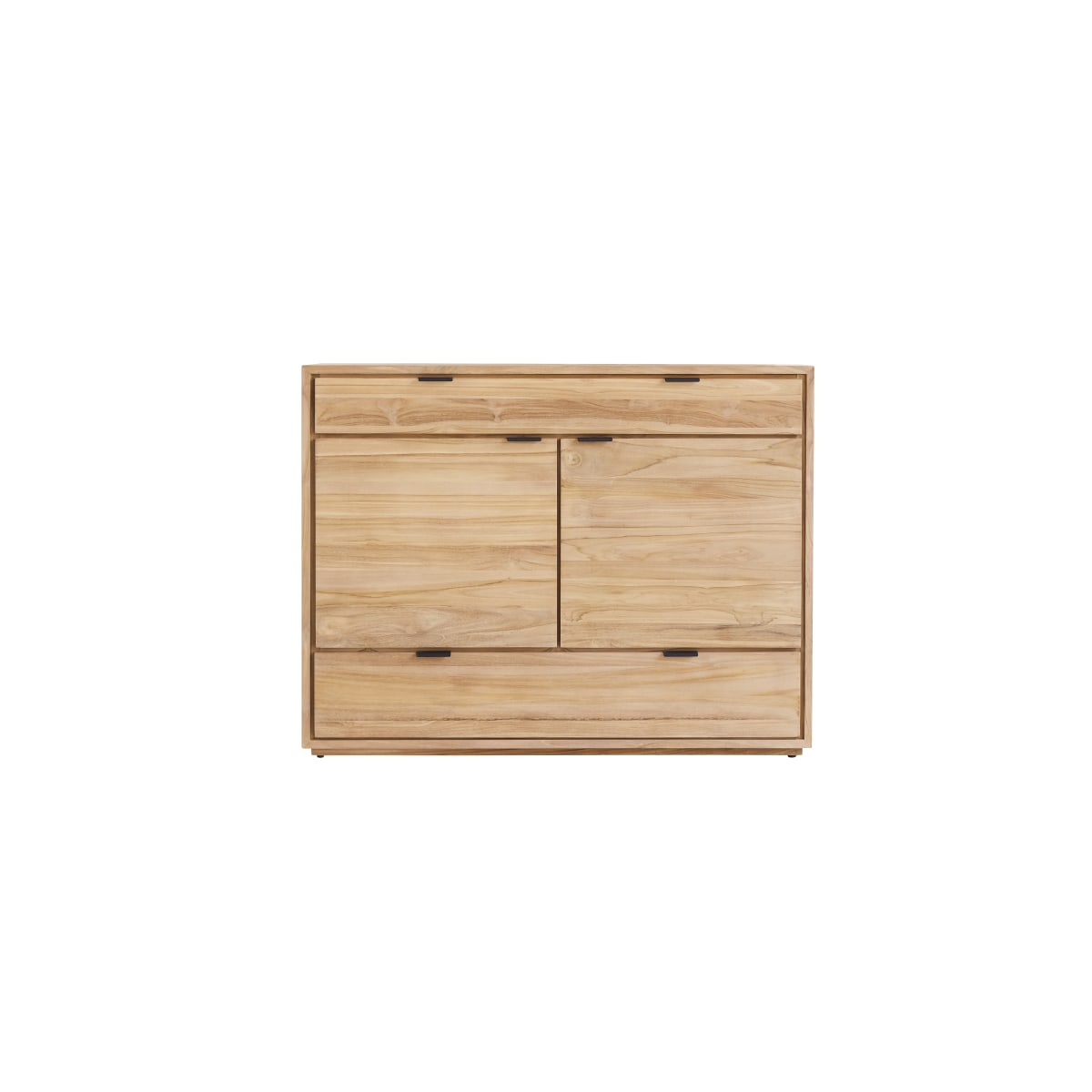 De buffetkast Senson van massief teak: authentiek, modern, elegant, is een eersteklas meubelstuk dat vele verleidelijke eigenschappen op vakkundige wijze combineert.
