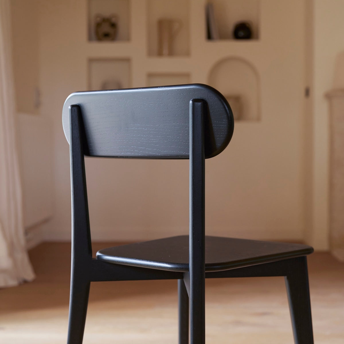 Deze stoel met een elegant en eenvoudig ontwerp, die al zwart geolied is, zal uw woonkamer een modern en origineel accent geven.