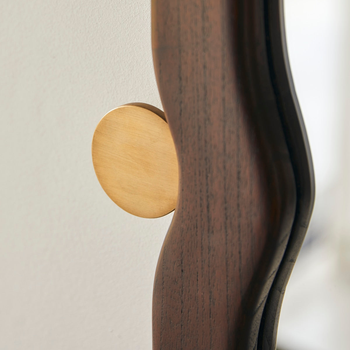 De Agate spiegel in massief mindi is geïnspireerd door de brutalistische stijl en combineert robuuste materialen met een zacht, organisch ontwerp vol charme, ideaal voor eigentijdse interieurs.