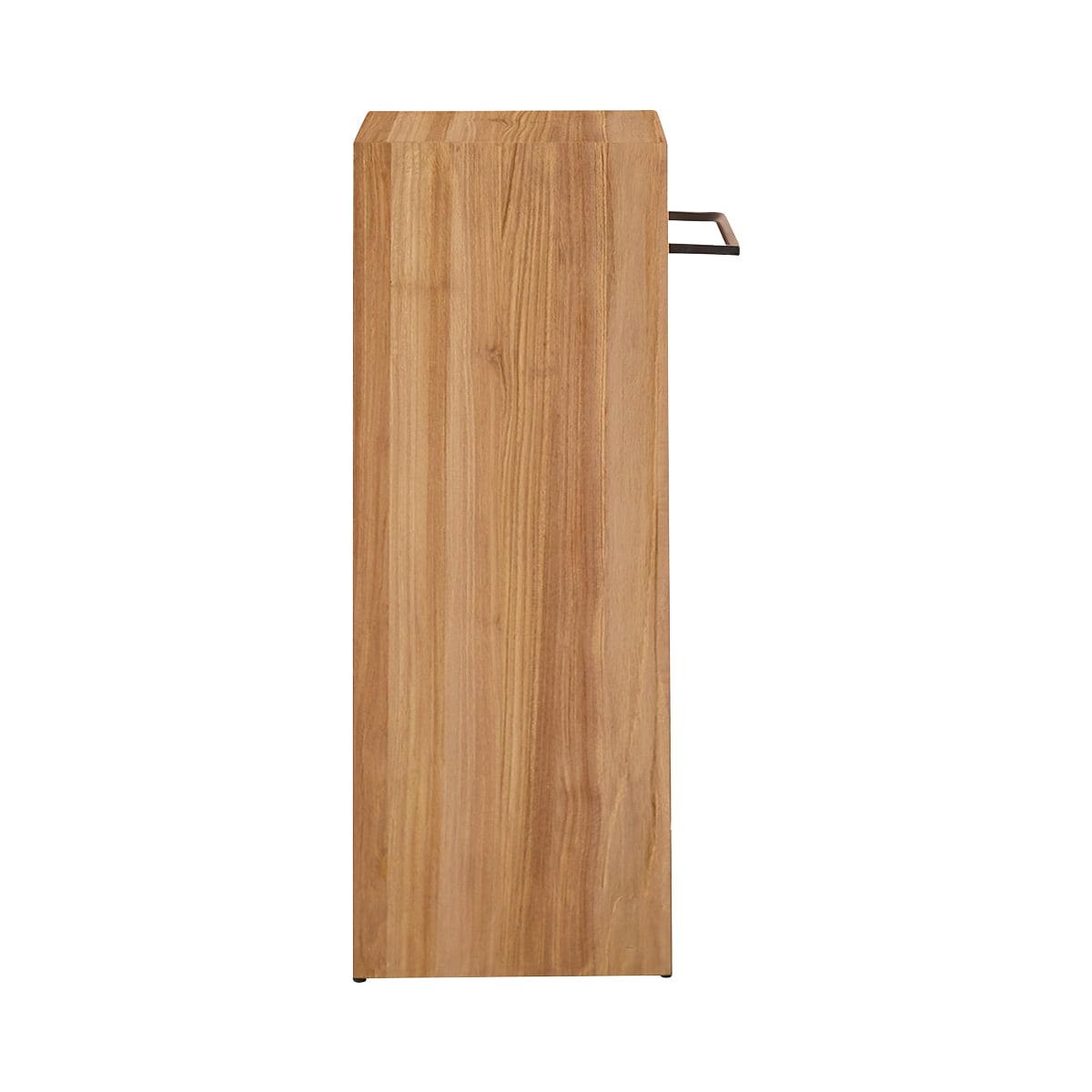 Dit charmante badkamermeubel van hoogwaardig teakhout FSC® past in alle grote en kleine badkamers. Alleen of in combinatie met het Stelle badmeubel links is het ideaal om uw interieur naar eigen inzicht aan te passen. De elegantie van de ontwerplijnen, de kwaliteit van de afwerking en de zorg waarmee het lichte teakhout opgeschuurd is om de schitterende nerven zichtbaar te maken, zullen u zeker niet ontgaan. Dit praktische meubel beschikt over 3 nissen en een handdoekhouder van verouderd messing voor meer comfort in uw badkamer. Aarzel niet om de Stelle badkamermeubels aan te vullen met de spiegel uit dezelfde collectie. Hier getoond met onze kleine marmeren waskom Bahya.