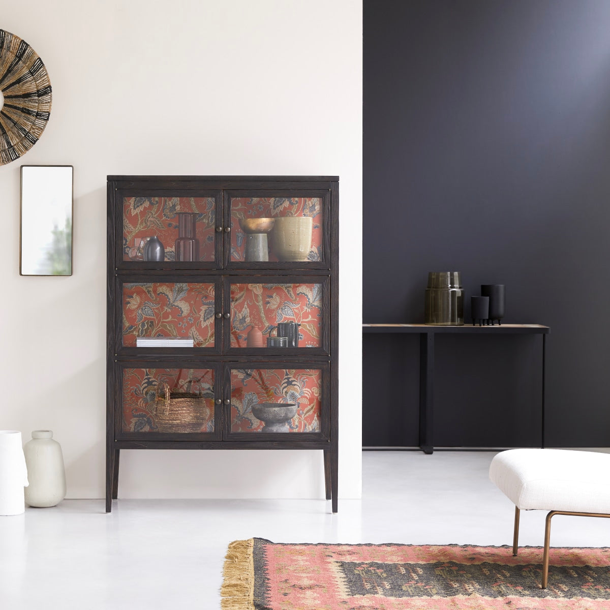 Een meubel als een uitnodiging tot reizen, exotisch en artistiek tegelijk: de iepenhouten vitrinekast Tana heeft vele verleidelijke troeven: een achterwand bekleed met mooi behang, strakke lijnen en een frame van hout. Met zijn elegante en unieke ontwerp kan het in elke kamer van het huis staan om uw mooiste decoratieve voorwerpen te laten zien, of het kan worden gebruikt als boekenkast.