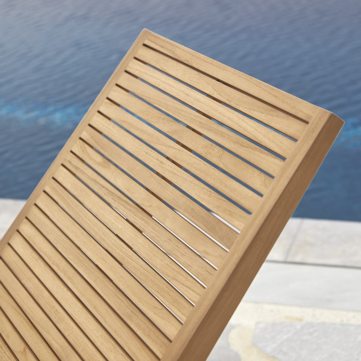 Het Teo ligbed van massief FSC®-gecertificeerd teakhout combineert comfort en elegantie. Het is perfect voor buiten of in een serre en kan worden gecombineerd met andere stukken uit de Teo of Hedendaagse collectie om een verfijnde ruimte te creëren. Een ideale keuze voor warme zomerdagen.