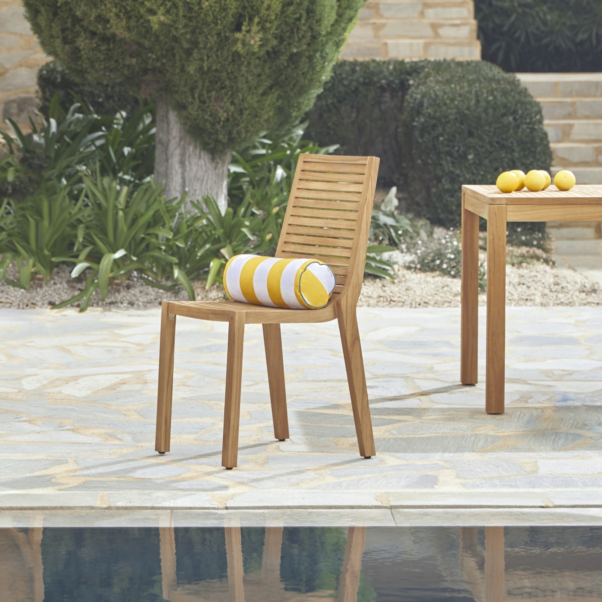 Onze Teo-stoel van massief teakhout met FSC-certificaat® is de perfecte aanvulling op uw tuintafel. Dankzij het elegante ontwerp geeft dit stuk een moderne decoratieve touch aan uw tuin.