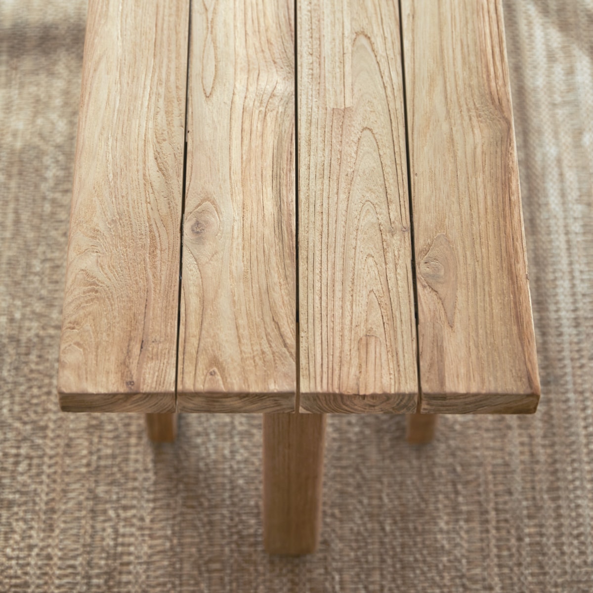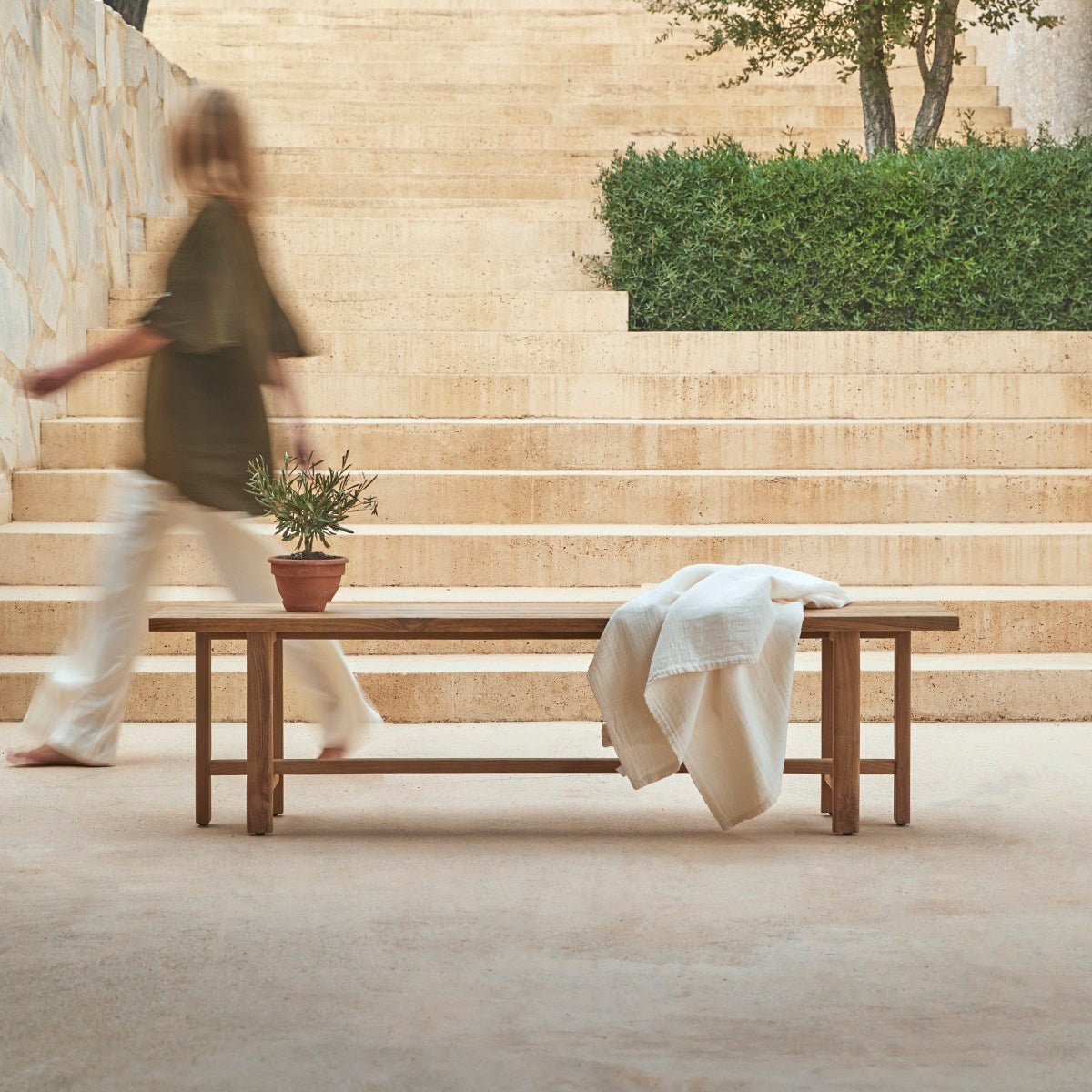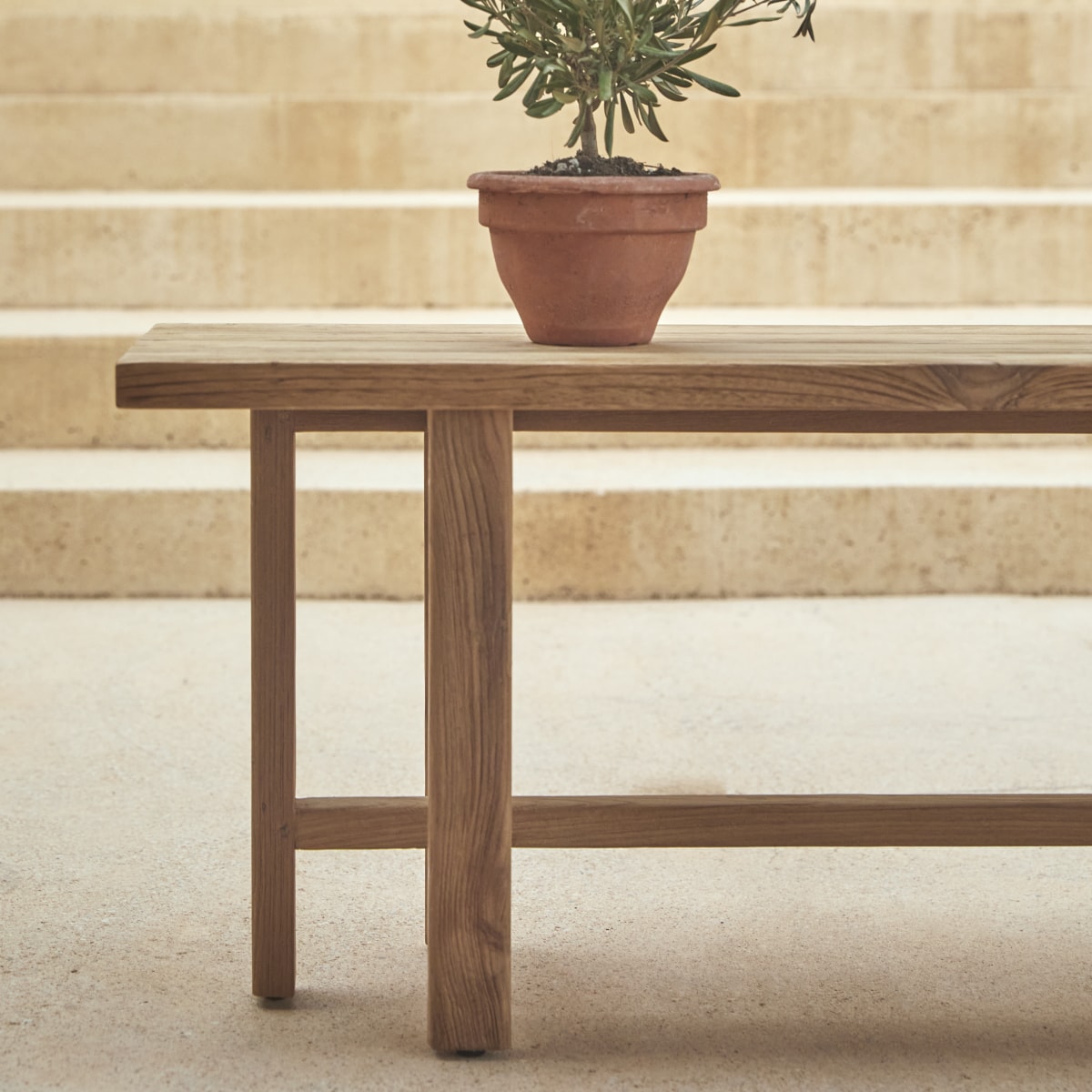 De Antonia tuinbank van gerecycled massief teak met FSC®-certificering combineert charme met respect voor het milieu dankzij upcycling. Hij is ideaal in combinatie met de Antonia tafel en kan ook worden gebruikt om planten op te zetten of als een relaxte zitplaats. Het natuurlijke, onbehandelde hout en het elegante onderstel weerspiegelen een exotische inspiratie die perfect past bij de Antonia collectie.