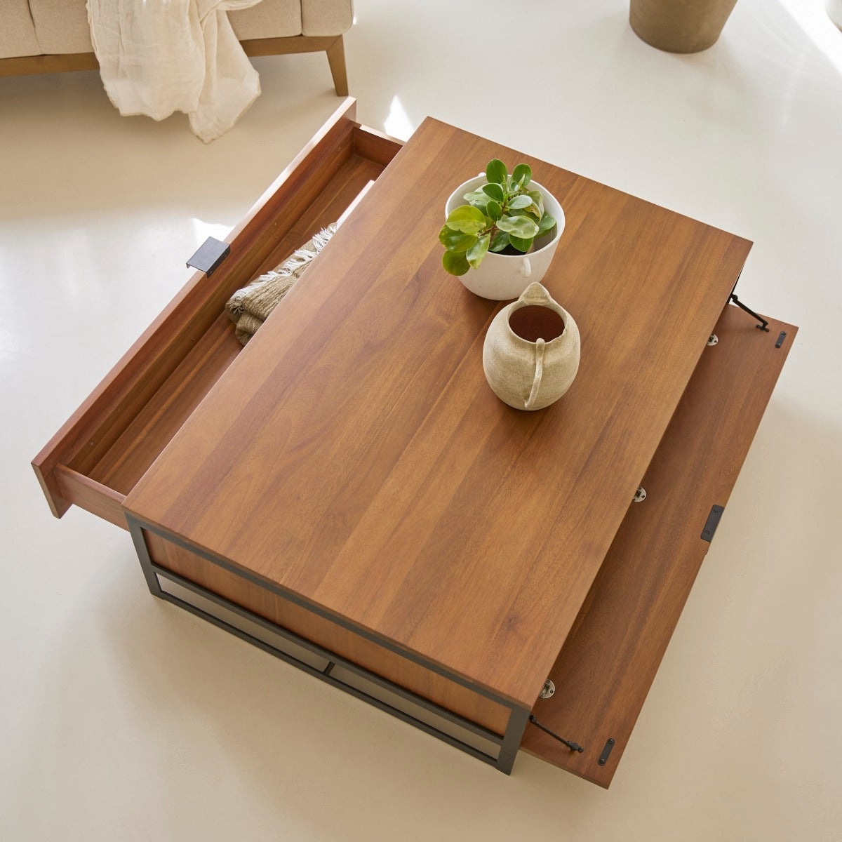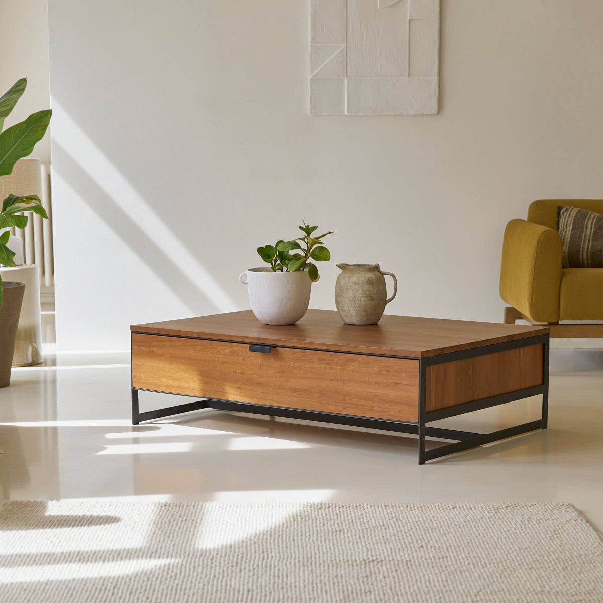 Lage tafel Urban van massief acacia heeft een geoliede finish, zodat hij gemakkelijker is in het dagelijks gebruik. Hij maakt deel uit van onze Metal and Wood-collectie en is ook perfect te combineren met meubels uit ons Atelier-assortiment.
