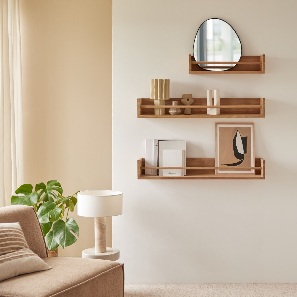 De massief teakhouten wandplank Ugo 100 is een echte vriend aan wie we graag onze favoriete boeken en speelgoed toevertrouwen. De breedte van deze plank is ideaal: In een oogwenk is de kamer opgeruimd en als het tijd is om naar bed te gaan of met vrienden te spelen, kun je je favoriete voorwerpen makkelijk terugvinden … Oudere kinderen zullen er met plezier schoolspullen, trofeeën en andere alledaagse voorwerpen in opbergen.