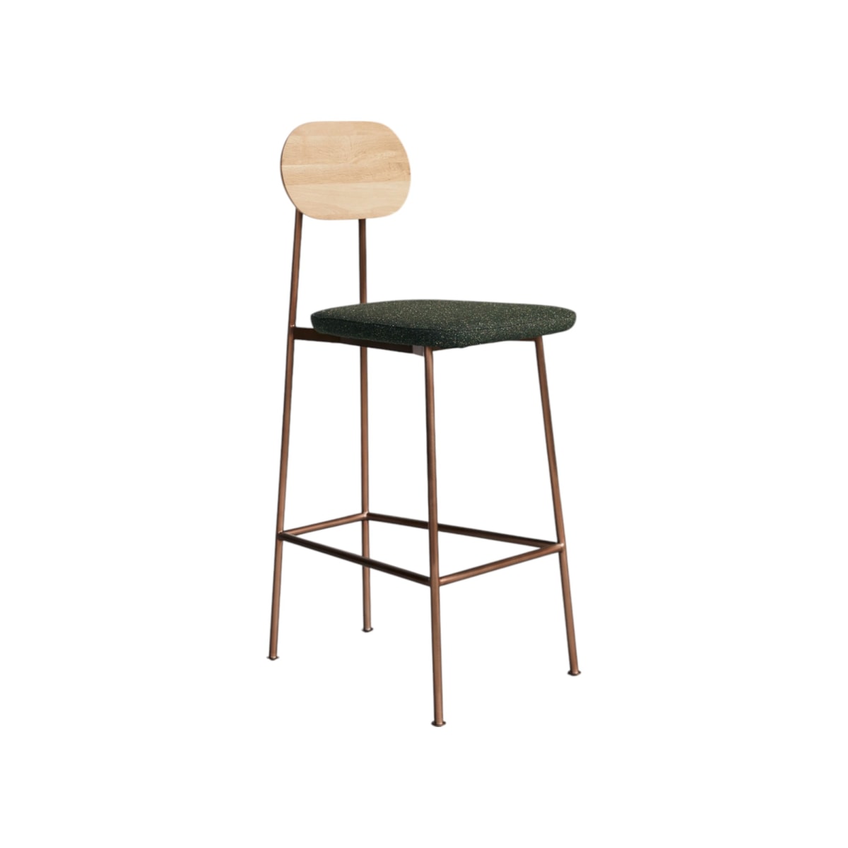 Combineer hem met de andere stoelen uit de Yutapi-collectie voor een uitgesproken vintage stijl of met uw bestaande interieur om een sobere uitstraling op te peppen. De massief eikenhouten rugleuning is geolied voor bescherming en om de natuurlijke schoonheid van het hout te laten zien. Verder met een met tweed beklede zitting in Britse stijl en een onderstel met geborstelde koperen poten: de hoge Yutapi-stoel van Bleu Nature met kakigroene tweed is ontstaan uit verschillende inspiratiebronnen!