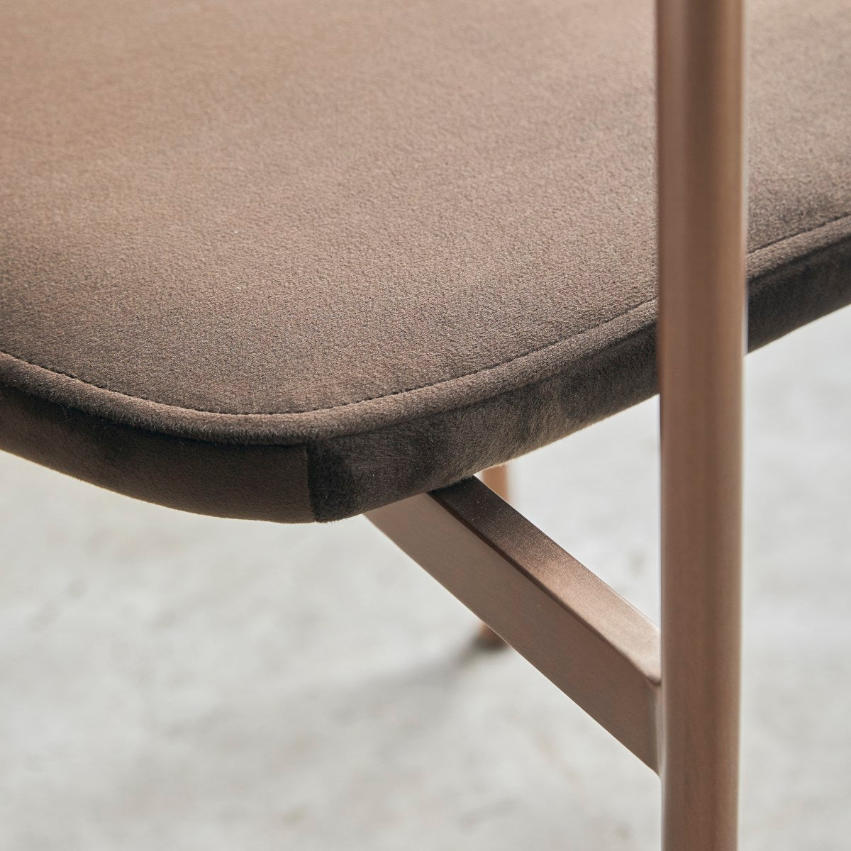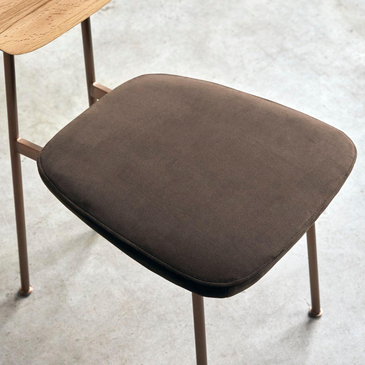De Yutapi-stoel van Bleu Nature combineert mooie materialen, een eigentijds design en een lichte uitstraling ... We houden van de ronde rondingen, het comfort van de fluwelen zitting en de mix van geborsteld koper en massief licht eikenhout.