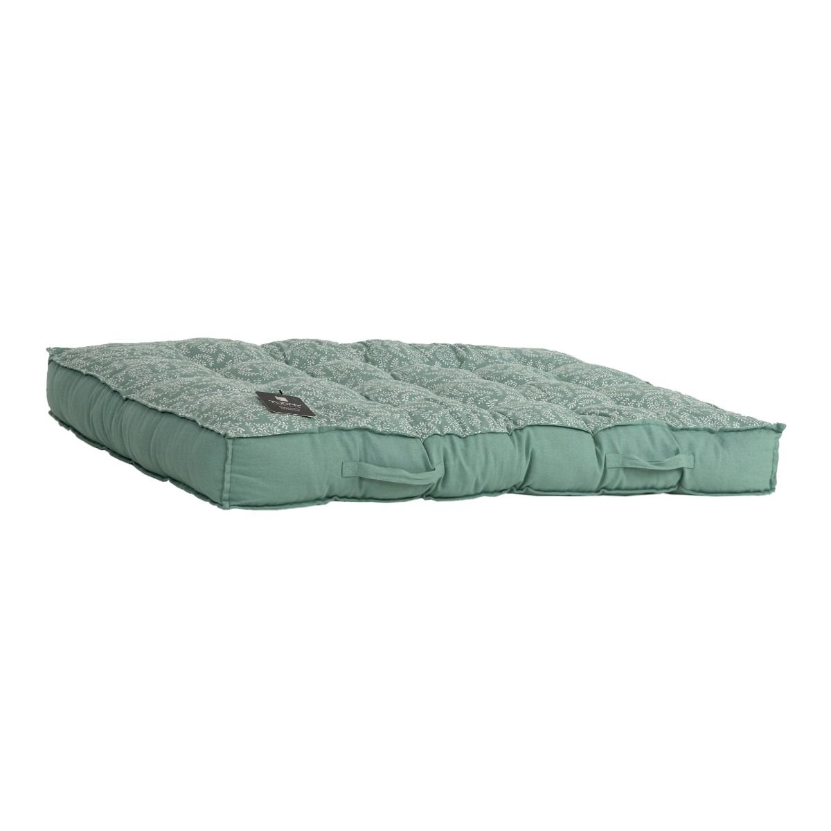 Voordelen - Mooie pastel groene kleur. - Heeft een leuk wit floraal patroon aan een zijde. - Twee handige handvatten aan de voorzijde. - Het kussen voelt stevig aan.