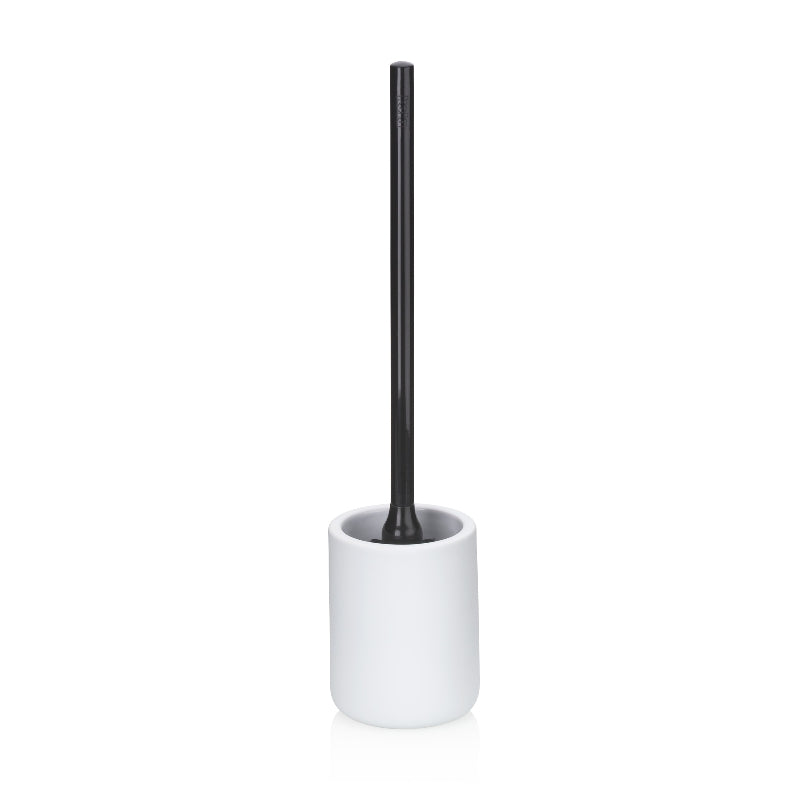 Toiletborstel met Houder, Kunststof, Keramiek met Rubbercoating, Wit -