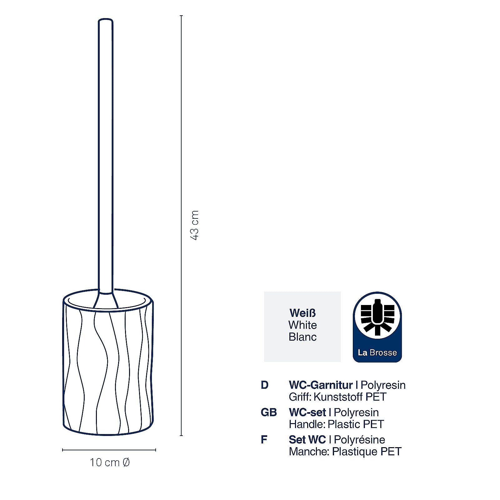 Toiletborstel met Houder, Polyresin, Wit - Kela | Merida