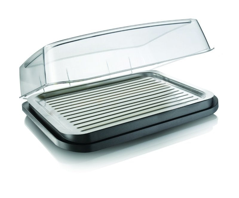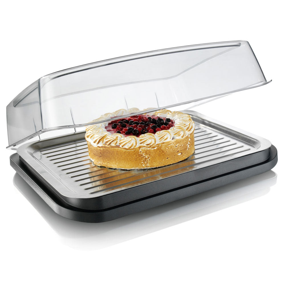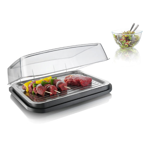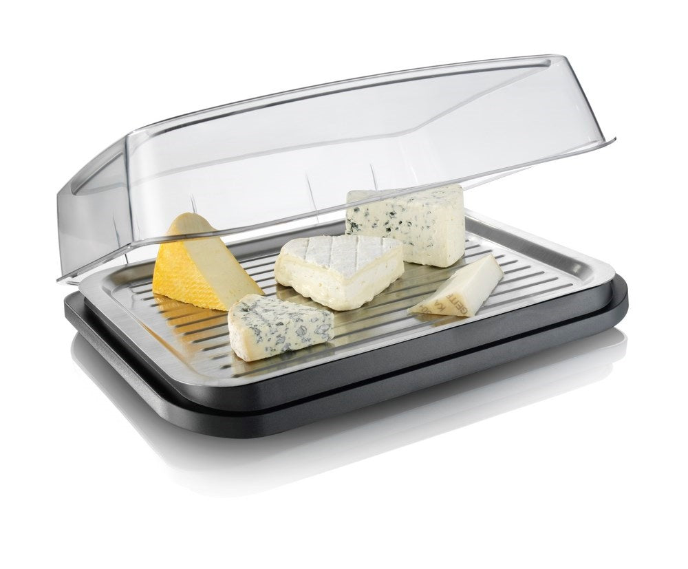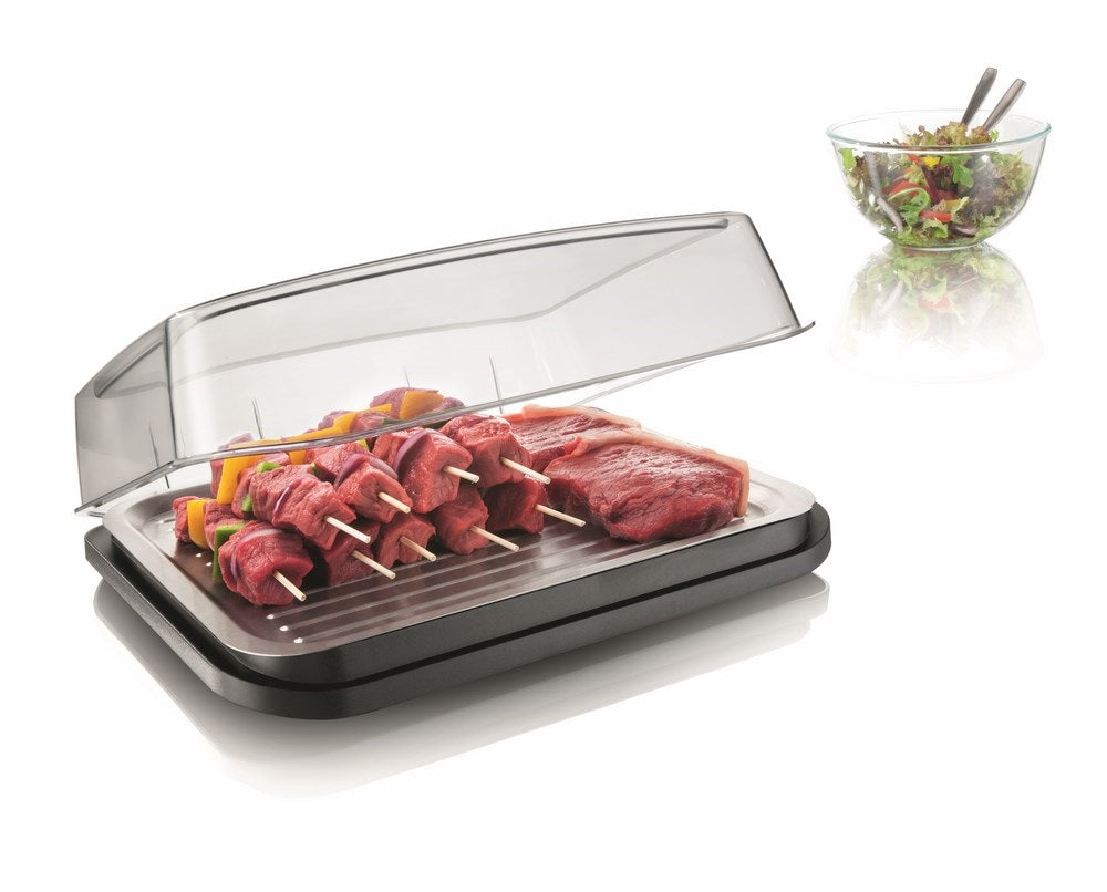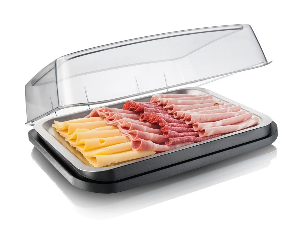 De Tomorrow's Kitchen Koelschaal werkt met een los koelelement (meegeleverd) dat gemakkelijk in de schaal is te plaatsen. Plaats de etenswaren op de RVS plaat en sluit af met het transparante kunststof deksel. Perfect voor het bewaren van hapjes zoals kaas, sushi en zoetwaren als taart. Ook perfect te gebruiken tijdens de barbecue of het gourmetten. Bij gebruik tijdens een barbecue buiten beschermt het deksel ook nog eens tegen insecten en ander ongedierte.