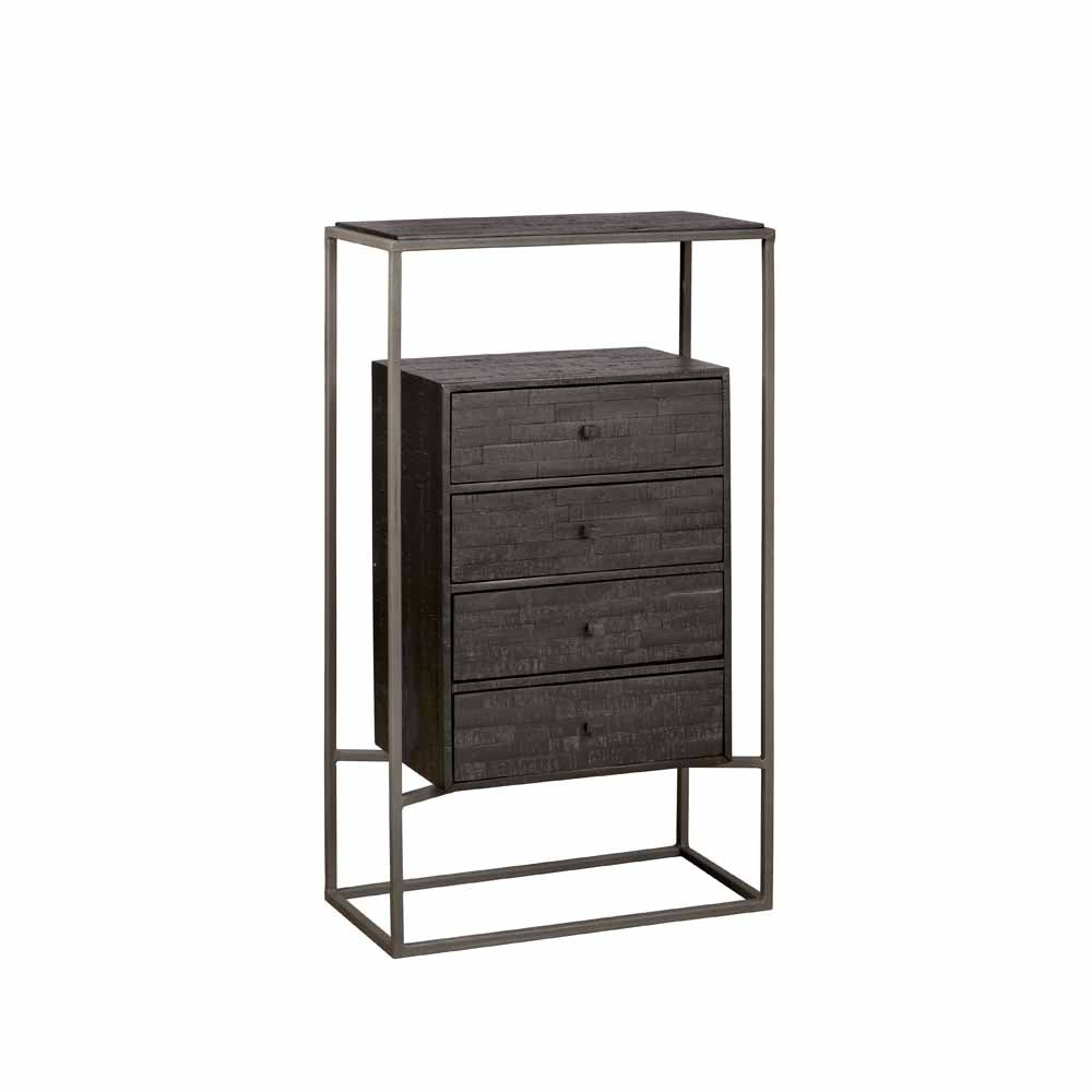 Tower Living | Cascia Kast met 4 lades | Gerecycled Teak | Zwart | 60