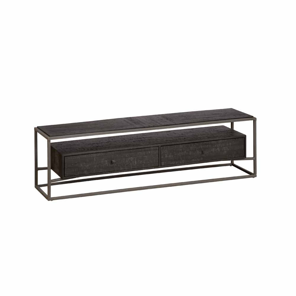 Tower Living | Cascia TV meubel met 2 lades | Gerecycled Teak | Zwart