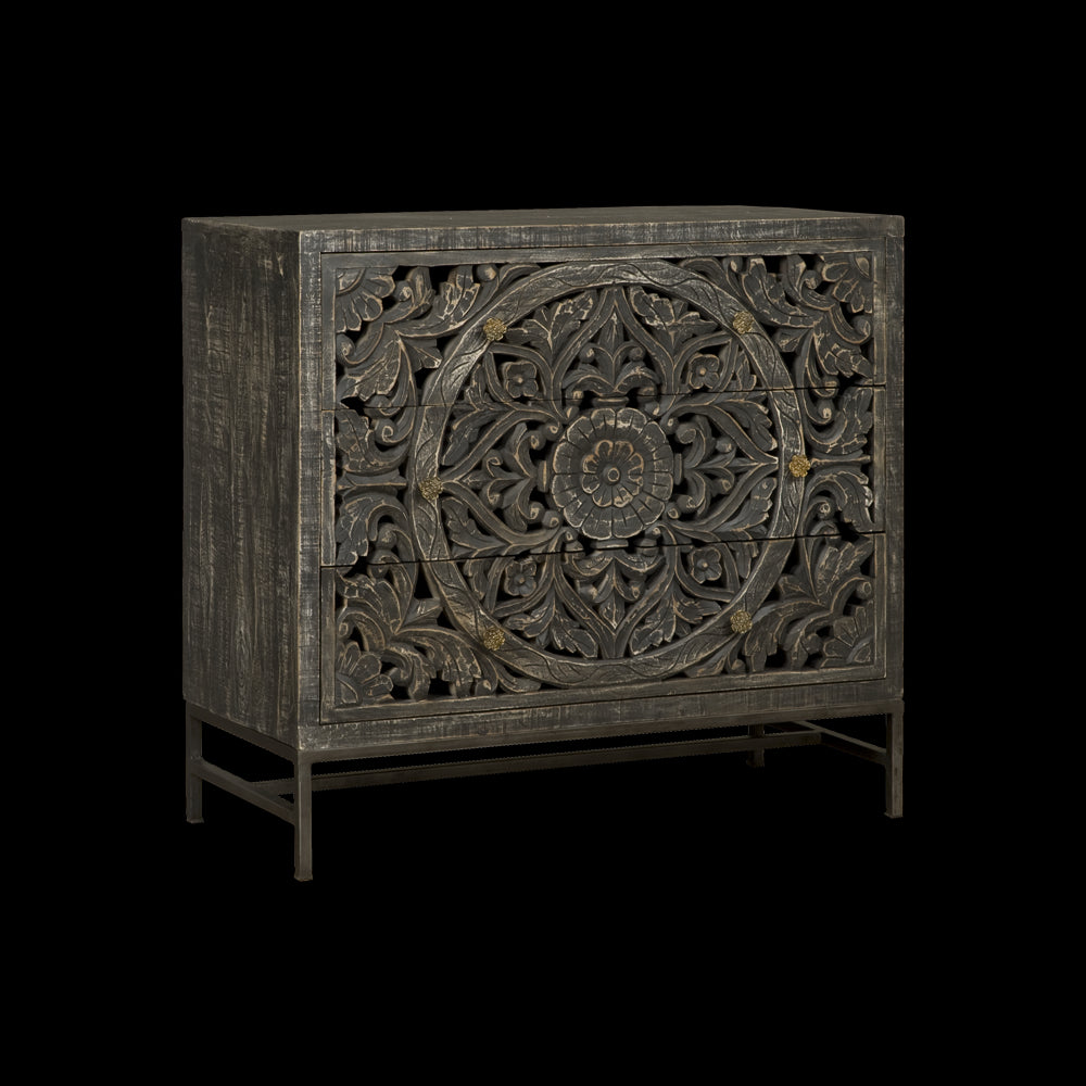 Tower Living | Casina Kast met 3 lades | Teakhout | Zwart | 100 x 45 x