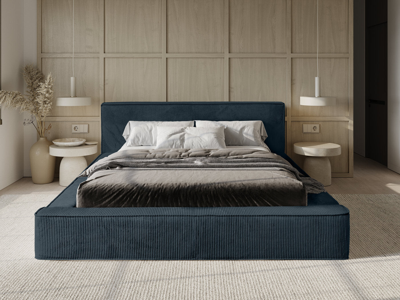 Trae Mobler Harmon 140x200 cm Gestoffeerd Bed Navy Blauw