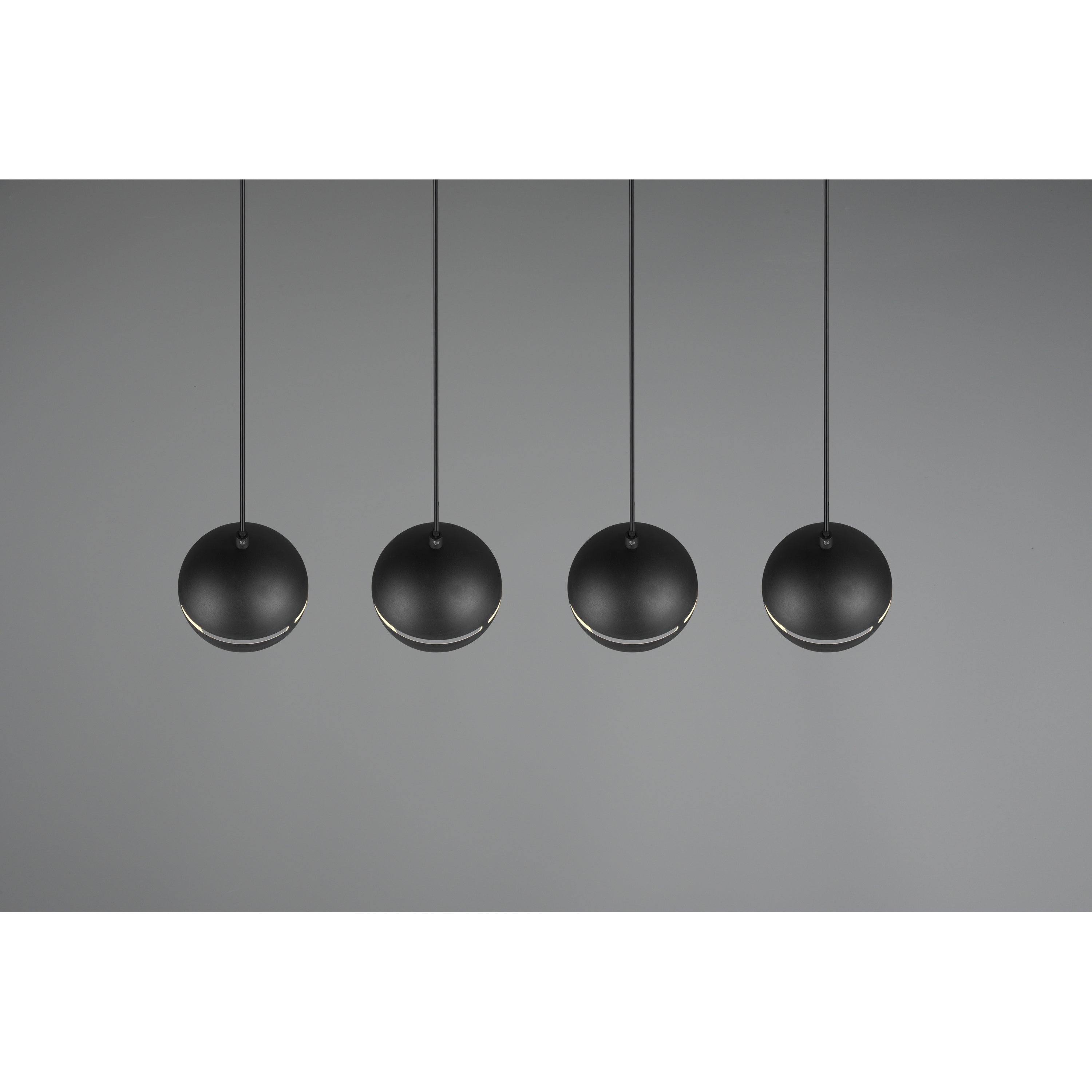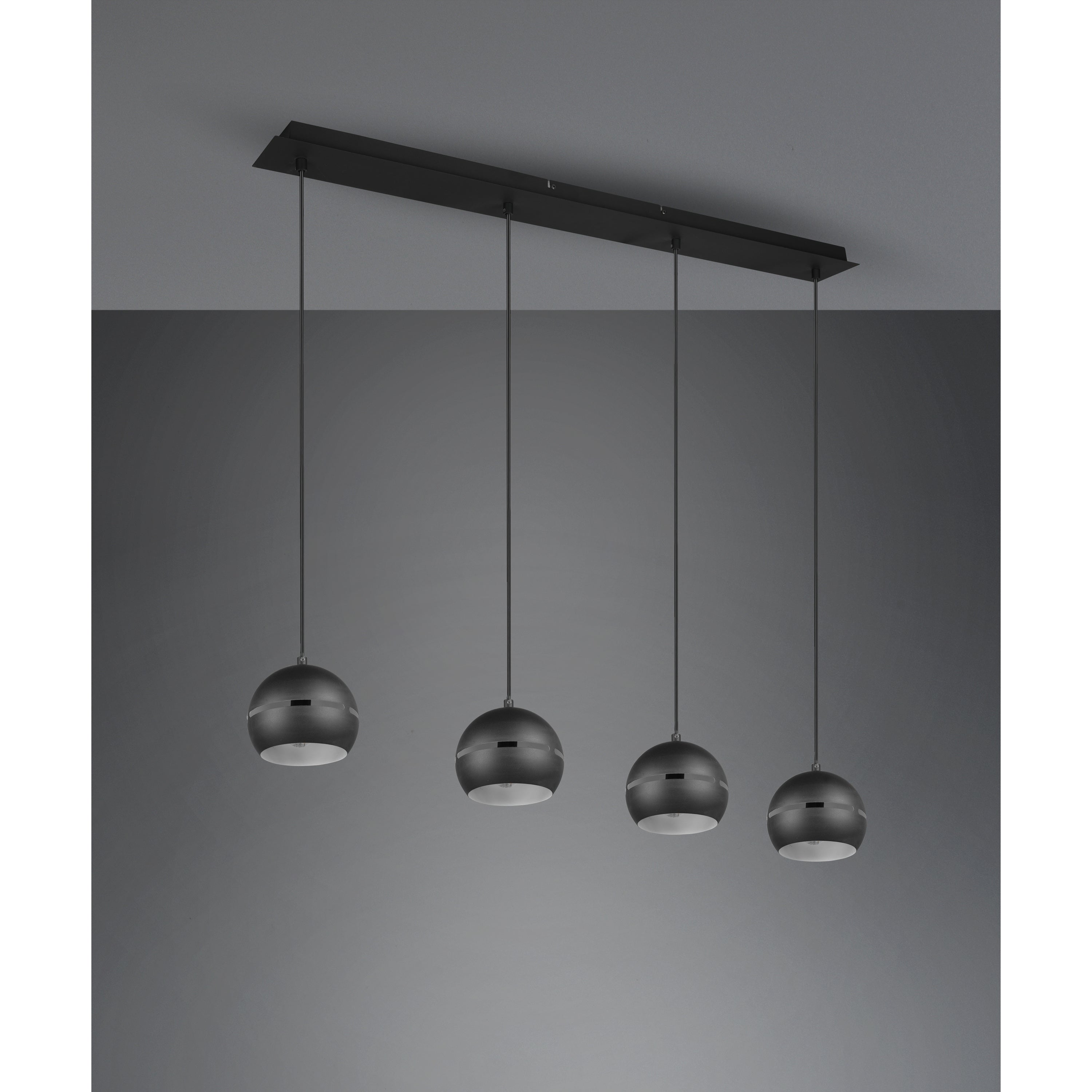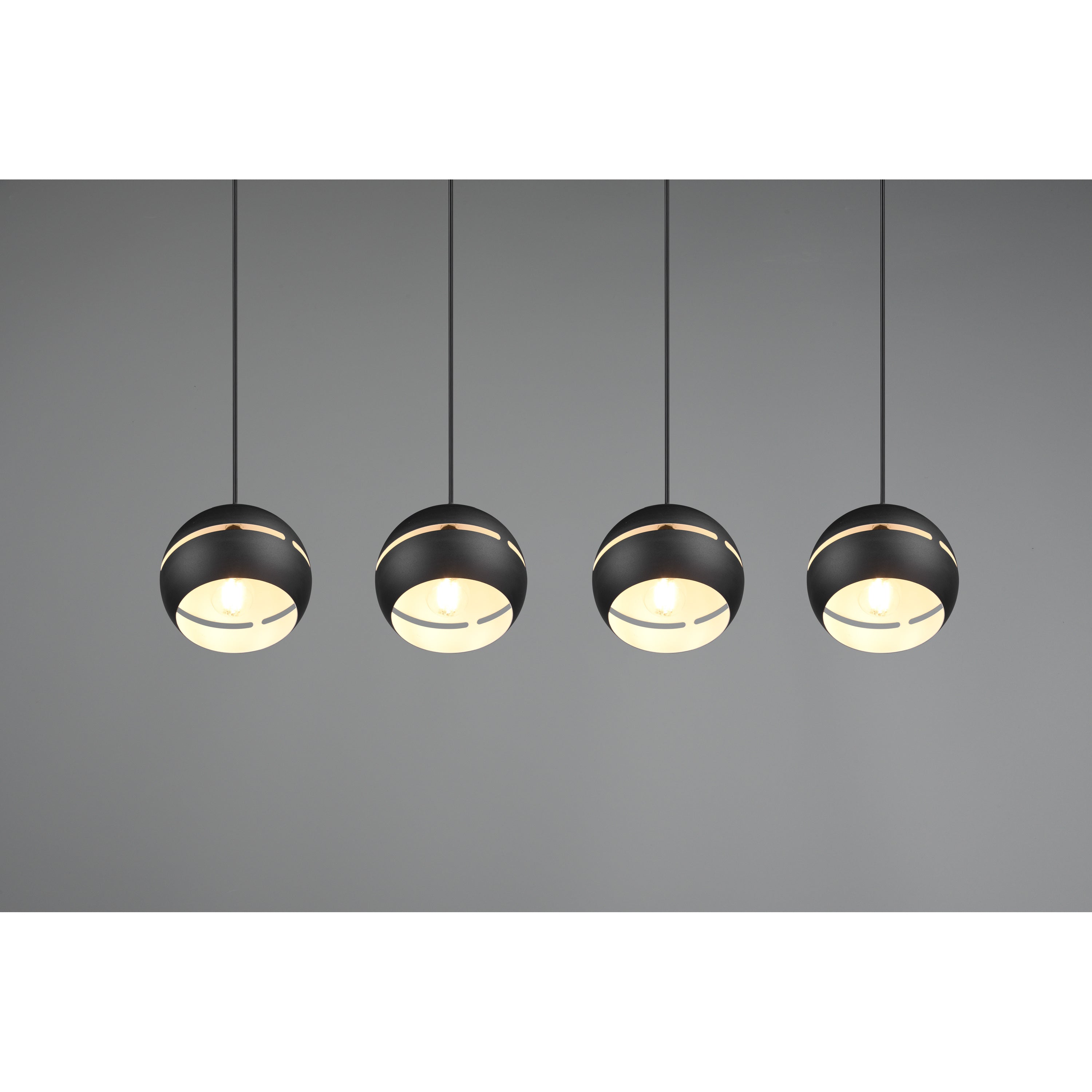 - Deze Fletcher hanglamp van het merk Trio Leuchen heeft 4 lichtpunten met ronde zwart metalen kappen.
