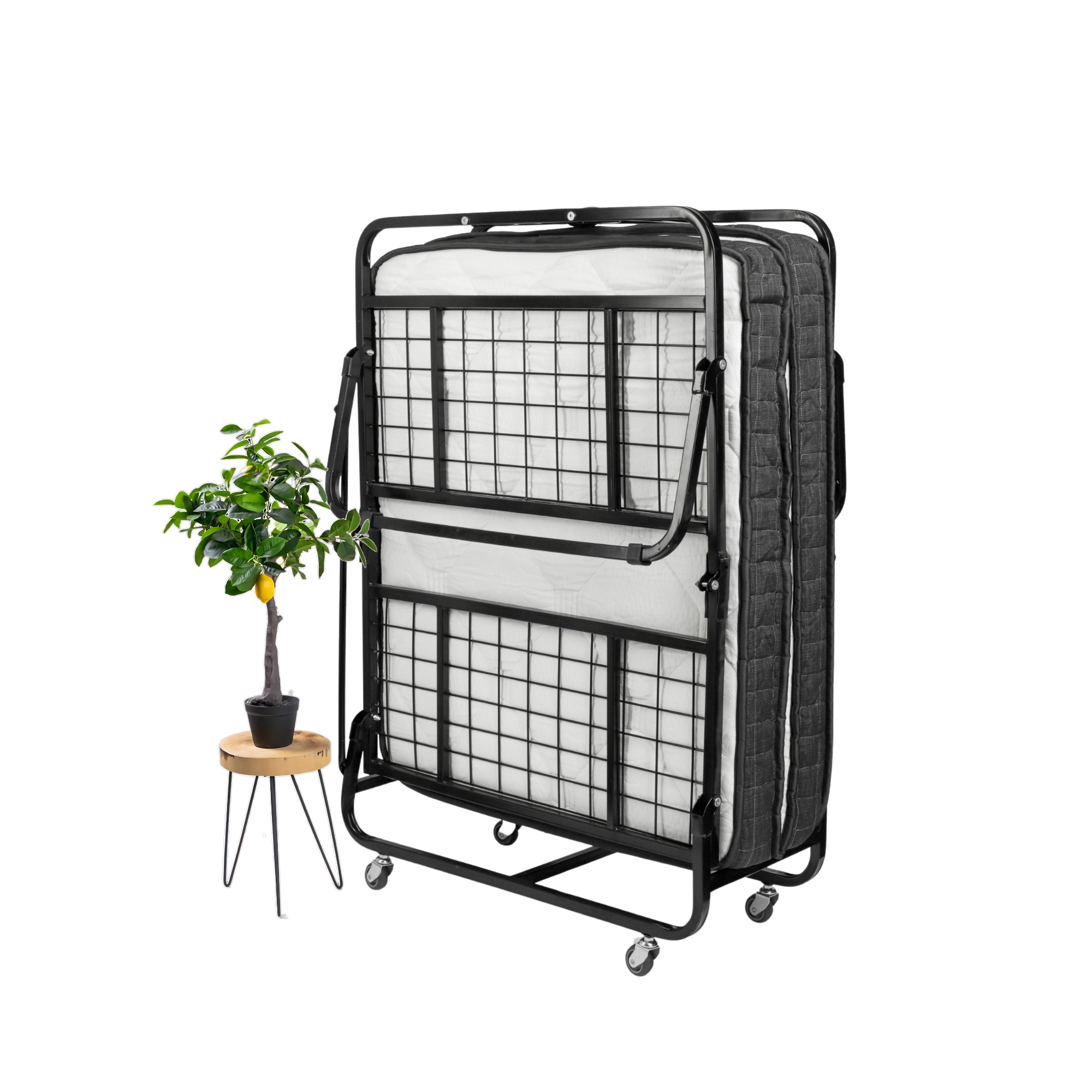 Maak je geen zorgen over ruimtegebrek, want dit bed kan eenvoudig worden opgeborgen wanneer je het niet nodig hebt. Het vouwbed is ontworpen om weinig opbergruimte in beslag te nemen, waardoor het ideaal is voor appartementen, logeerkamers of zelfs voor onderweg. Dankzij het slimme opklapsysteem kun je het bed snel opzetten en weer opbergen, zodat je de ruimte kunt gebruiken voor andere doeleinden.
