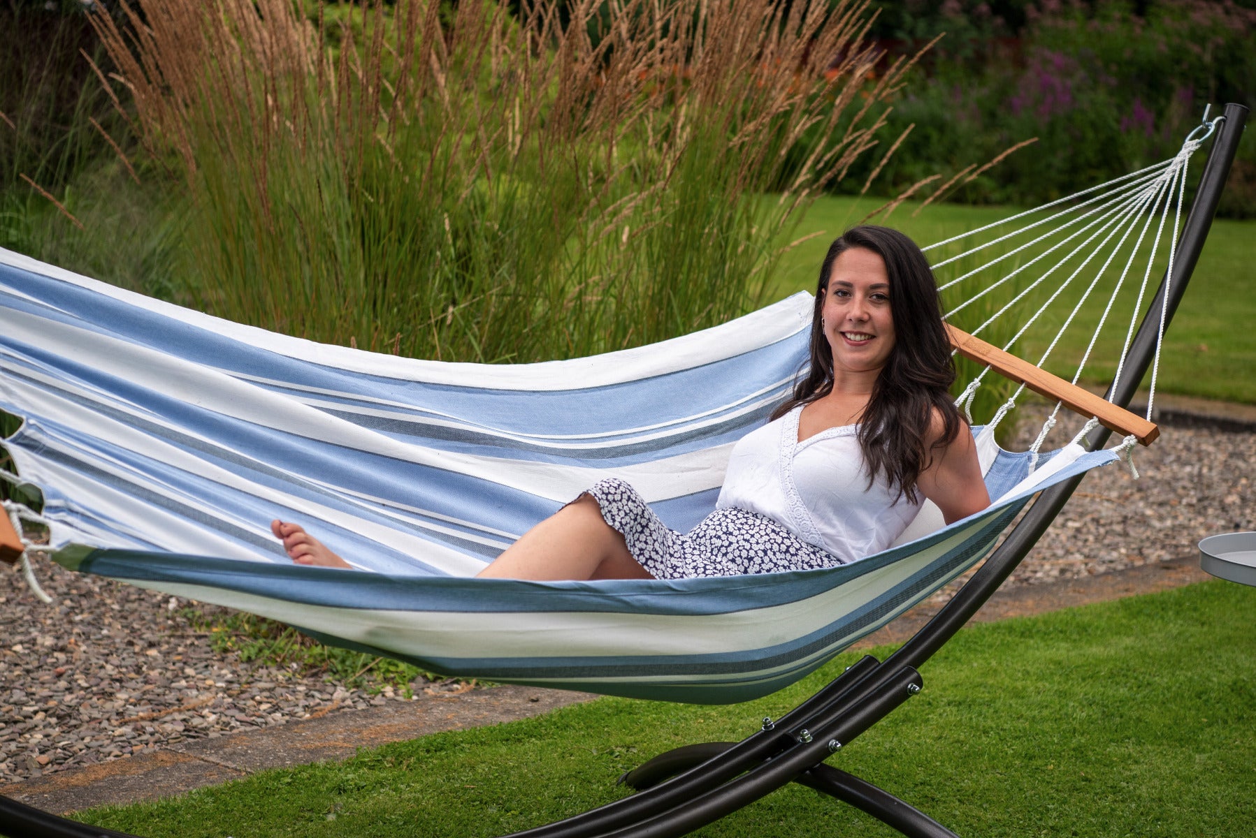 Het doek van deze hangmat is gemaakt van Oeko-Tex® gecertificeerd katoen. Het bestaat uit 70% katoen en 30% polyester. De polyestergarens zorgen ervoor dat het katoen niet te veel uitrekt en zijn vorm behoud.