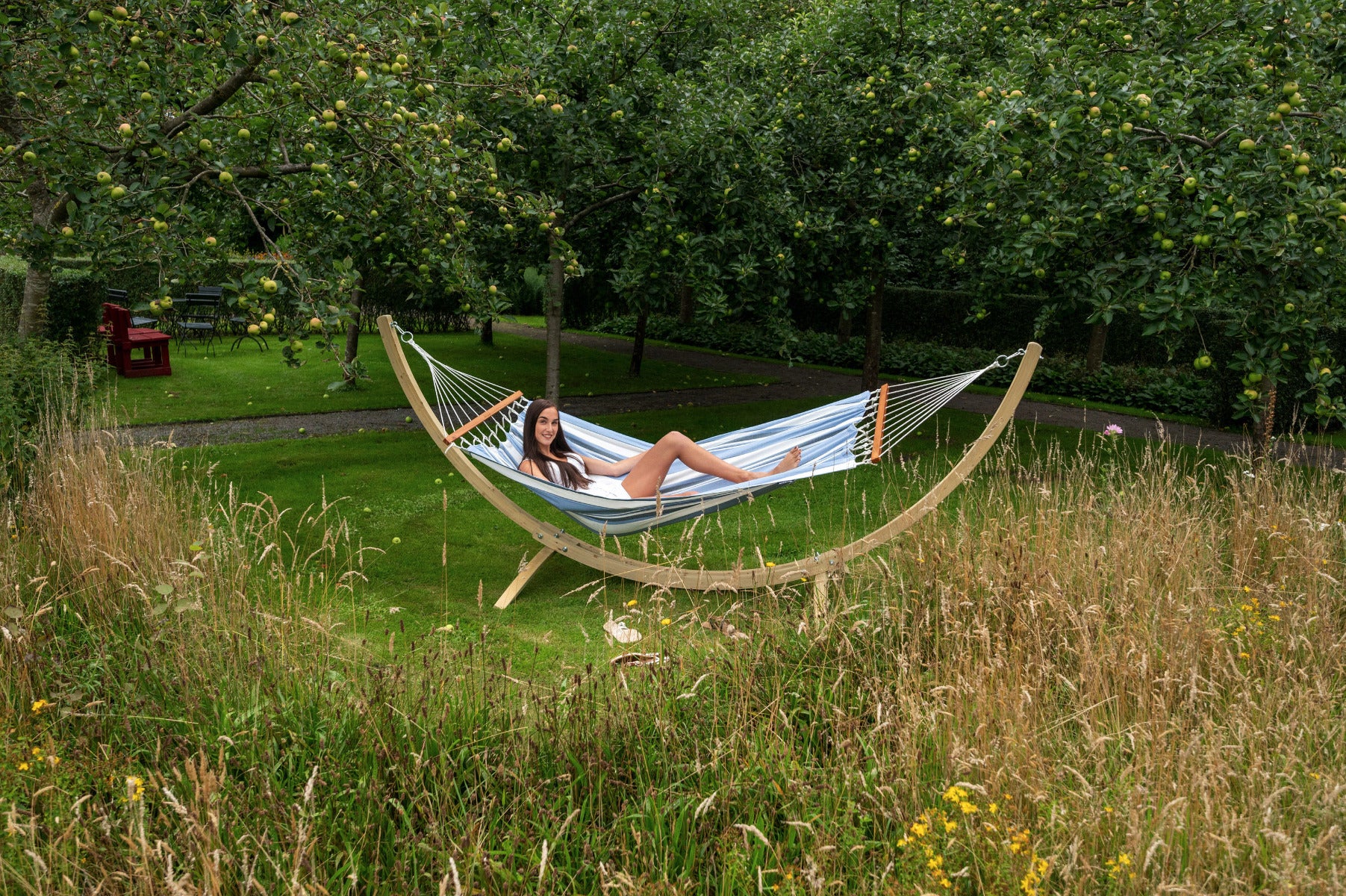 Gemaakt in India maar met de afmetingen afgestemd op de lengte van westerse mensen. Voor hangmatten geldt: hoe groter het doekoppervlak, hoe lekkerder je ligt.