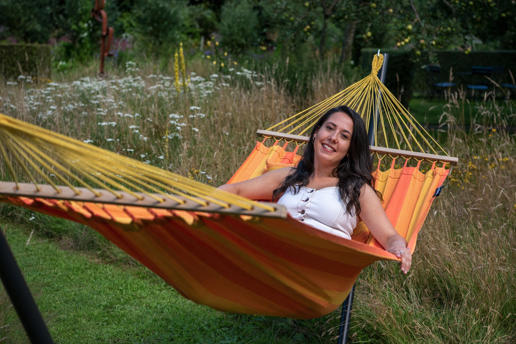 Het katoen i.c.m. de speciale patronen geeft de hangmat het uiteindelijke zachte karakter.
