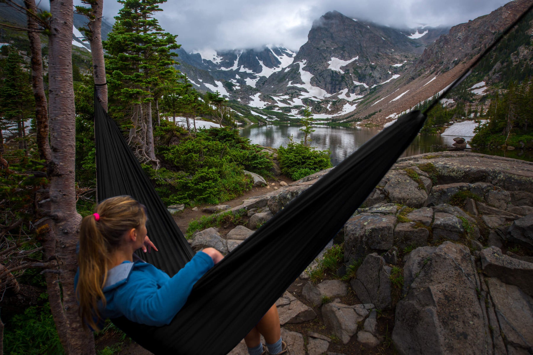 De bijgeleverde Tree-Trap is 2 x 3 meter lang. Genoeg lengte dus om een grote afstand te overbruggen. De twee lichtgewicht karabijnhaken klik je makkelijk aan de reishangmat vast.