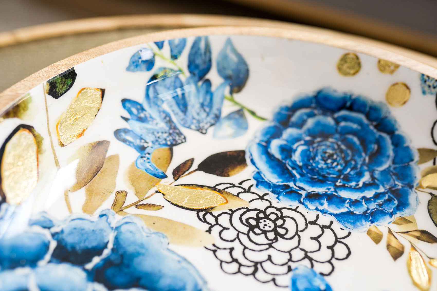 Blauw, wit en een touch of gold kenmerken de print Dutch Blue uit de collectie van kunstenares Lammie. Speciaal voor TS Collection creëerde zij zes sprekende prints met ieder een eigen verhaal. Dutch Blue belicht de rust en nuchterheid van de Nederlandse natuur en cultuur. Uitgestrekte weilanden met veldbloemen, halmen en water. Nederland oogt ordelijk en beheerst. Maar achter deze ogenschijnlijke kalmte schuilt ijver en hartstocht. Vier je passie voor de natuur met dit weloverwogen design Dutch Blue. Er is keuze uit een dienblad en fruitschaal van mangohout verguld met Dutch Blue print van emaille, metalen potterie in extra grote maten en smaakvolle decoratieve hangers. Spring in de wereld van Lammie en ontdek alle zes designs. Kwaliteit en exclusiviteit zijn de pijlers van de collectie Designed by Lammie, een range die bol staat van kleur en karakter. Deze bijzondere collectie is uitgebracht als Limited Edition.