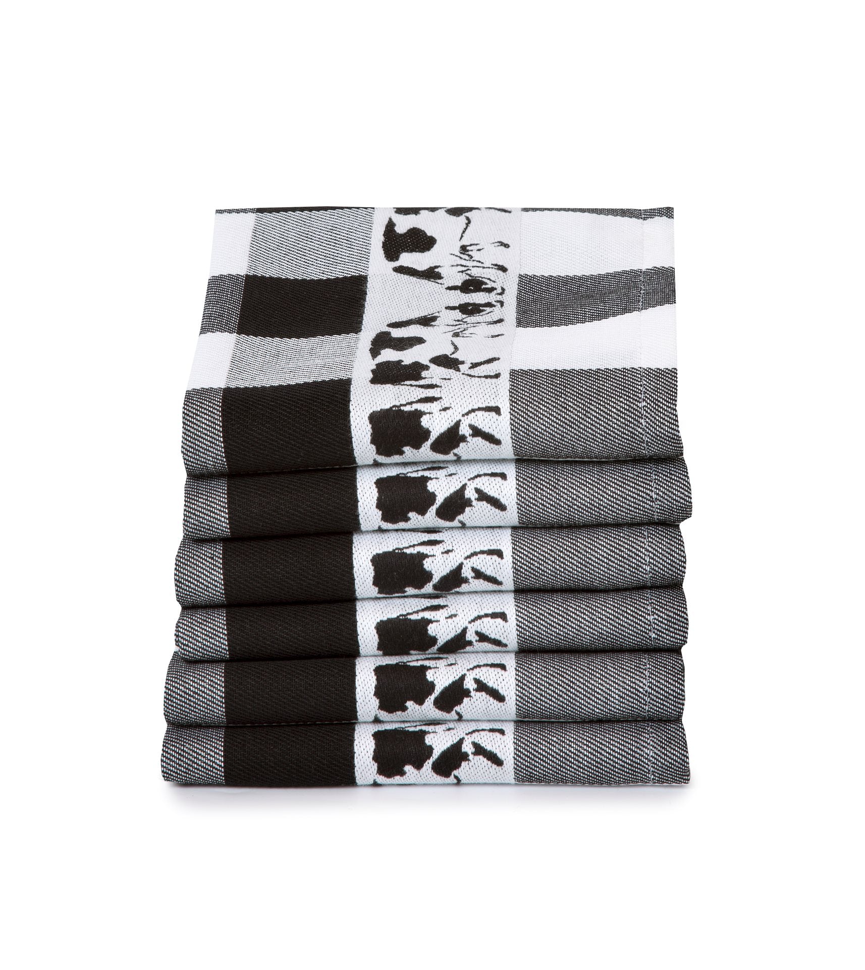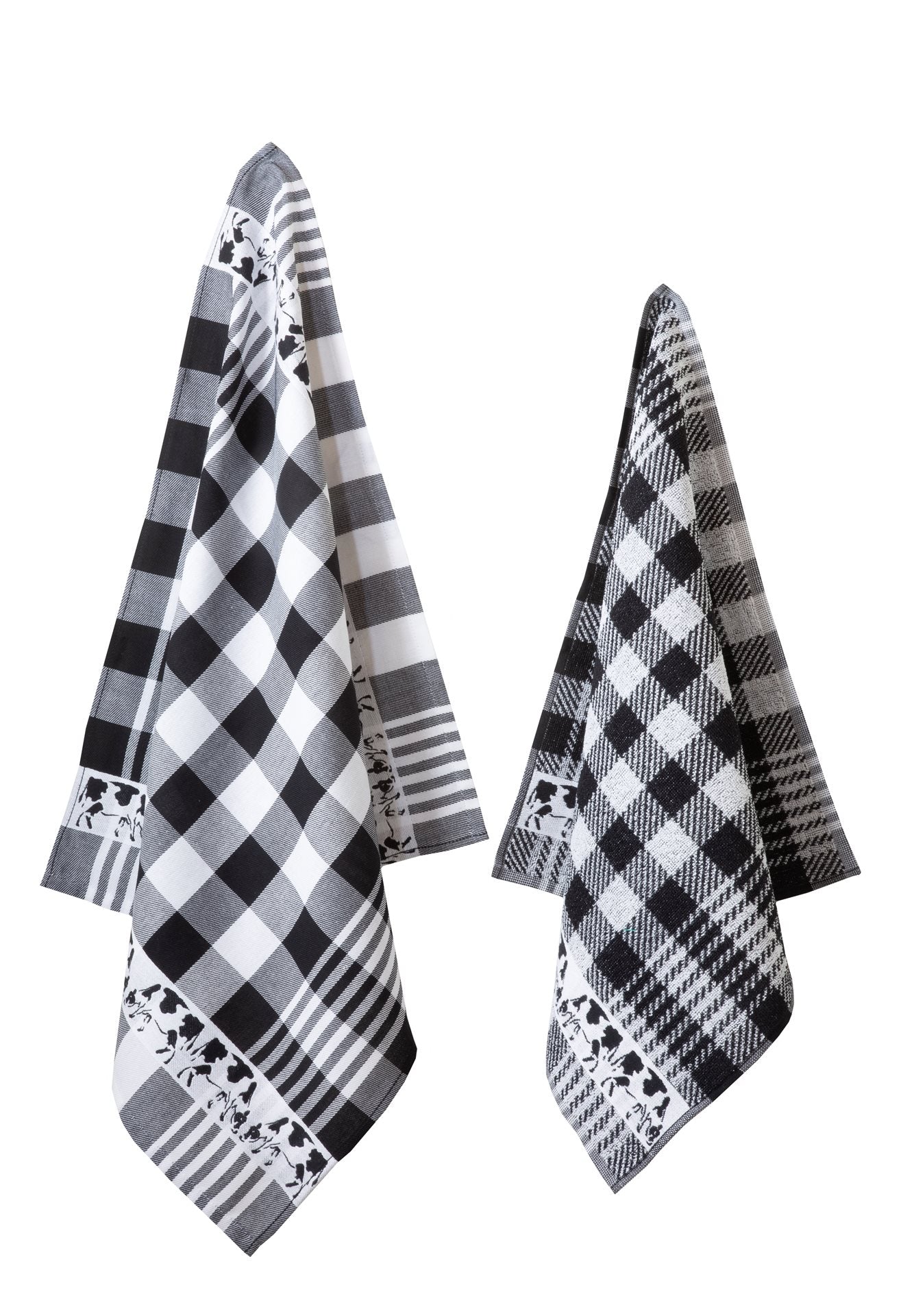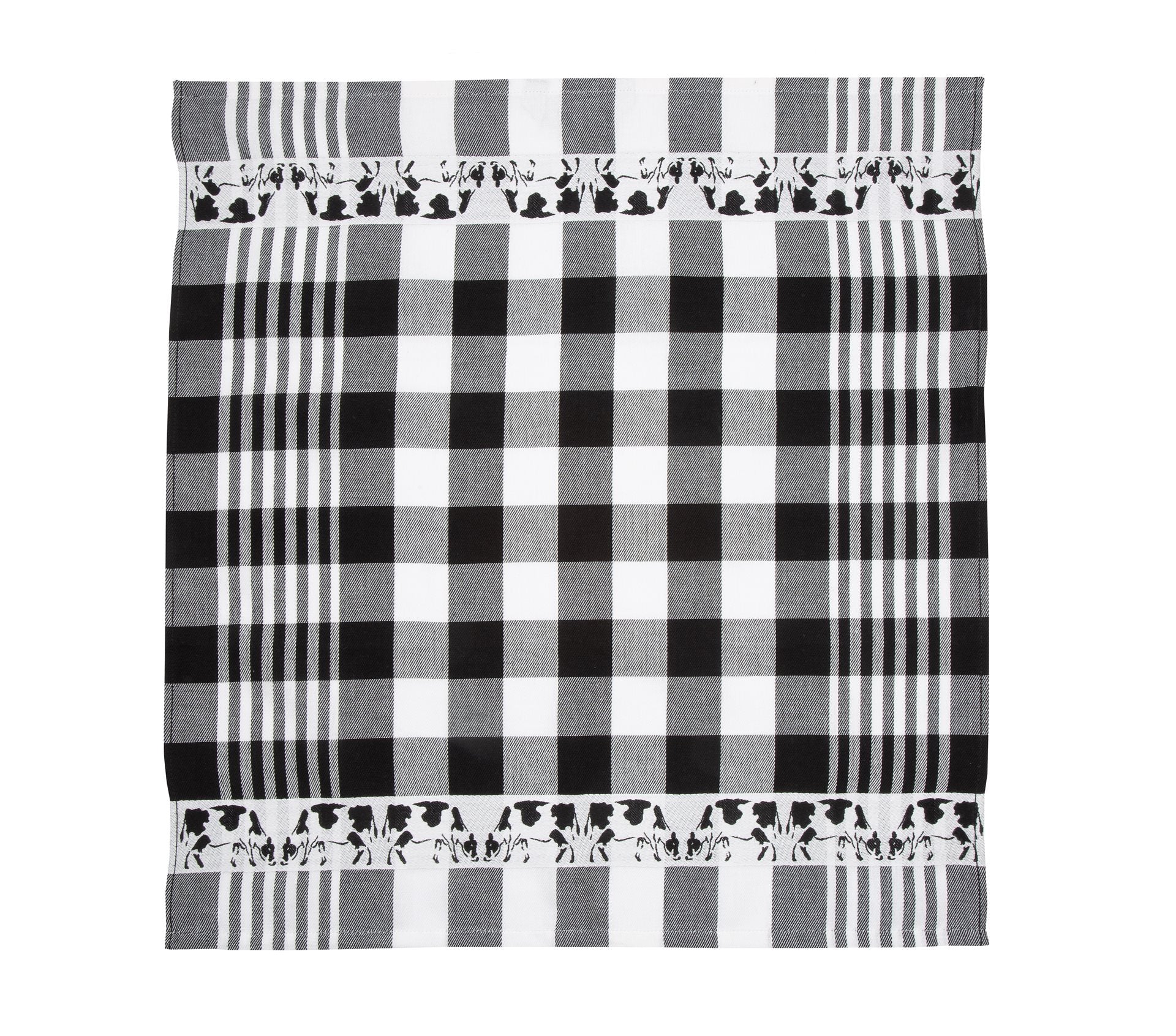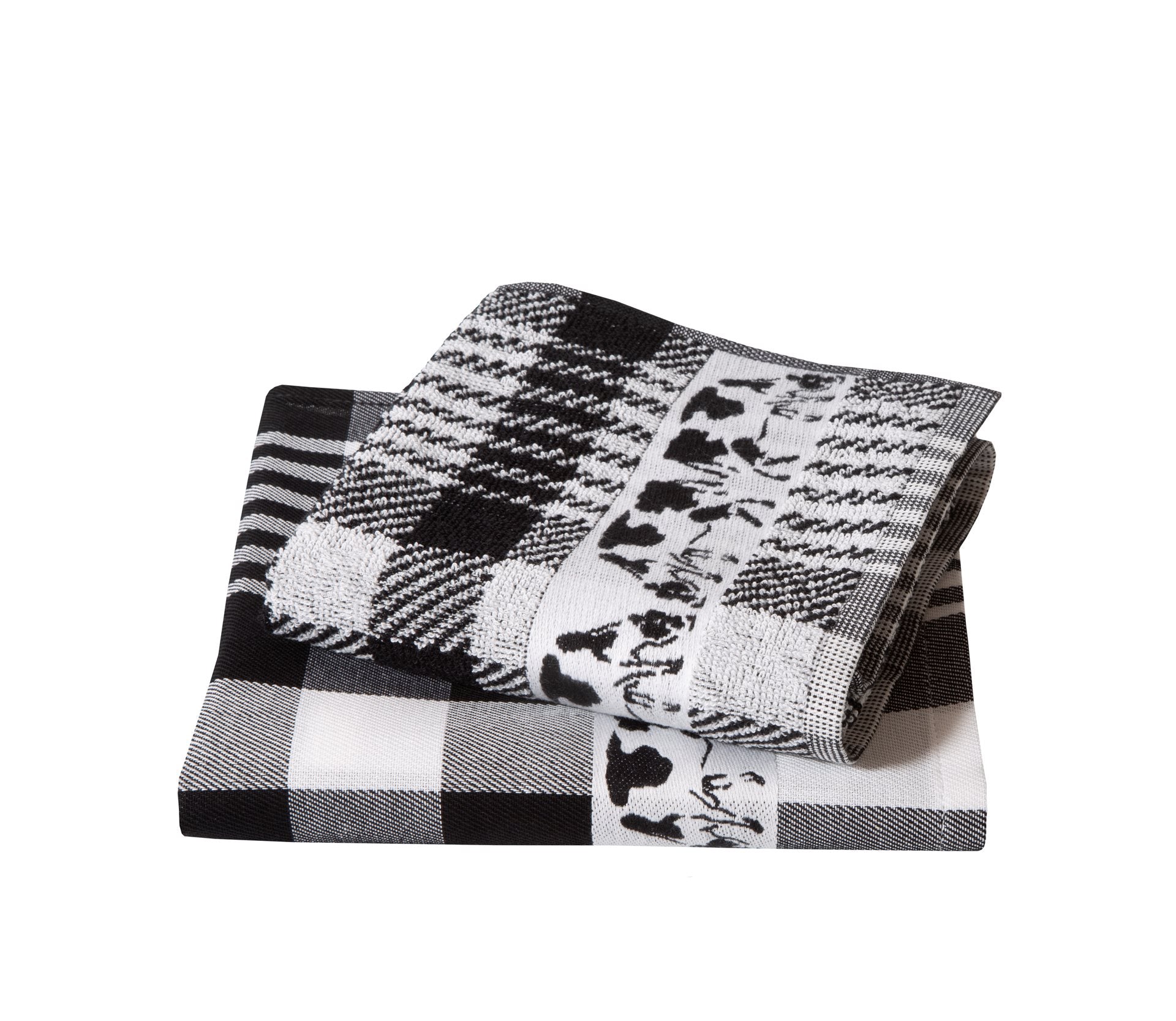 Deze geweldige set met luxe theedoeken met blok patroon in design Koe Zwart past in iedere keuken!