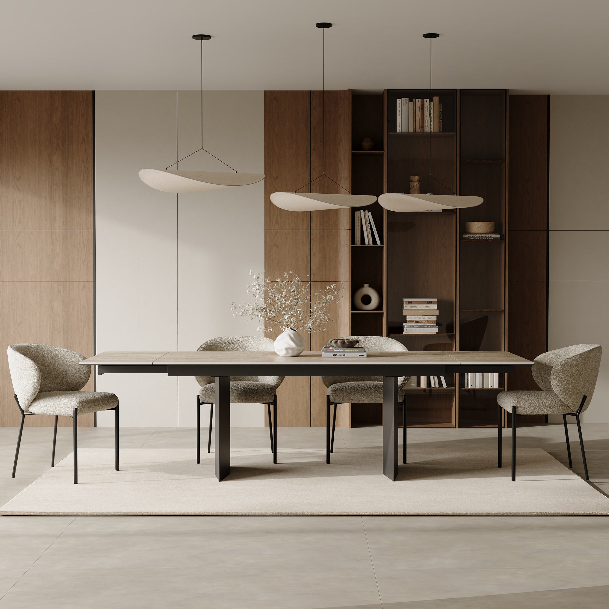 De strakke lijnen van de Rose uittrekbare tafel maken het een stuk dat zijn omgeving sublimeert dankzij zijn delicatesse.