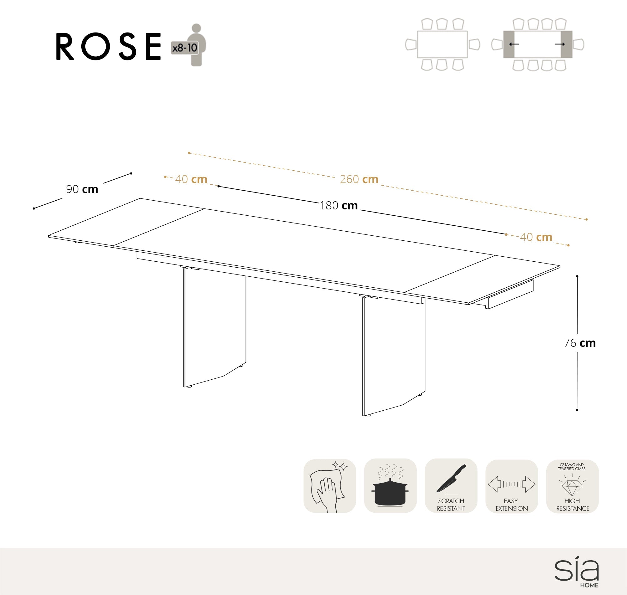 | Adres marktdeelnemer | Uitschuifbare tafels ROSE 10 zitplaatsen Keramiek Zwart |