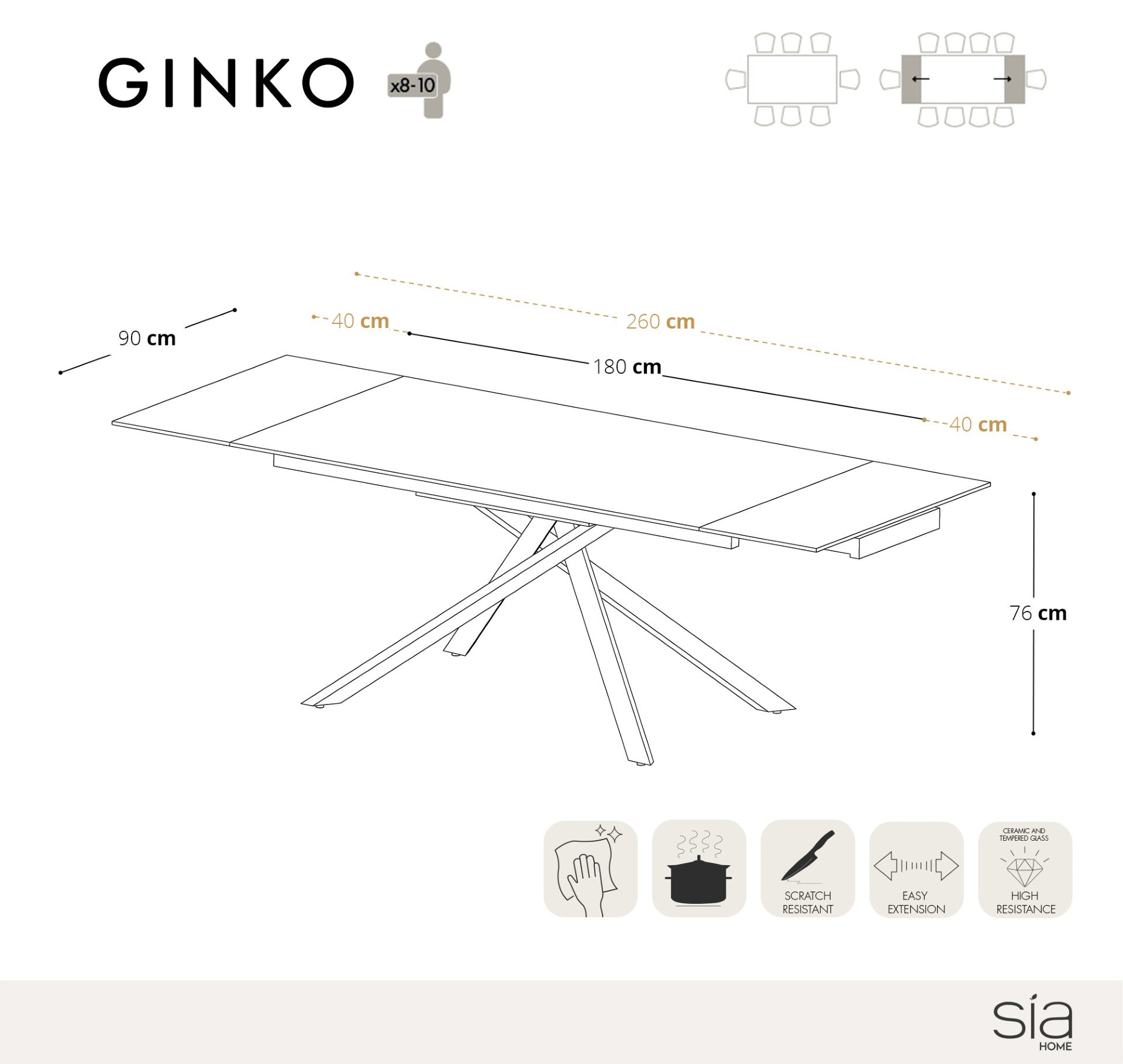 Uitschuifbare tafel 8-10 personen wit marmer effect keramiek 180cm