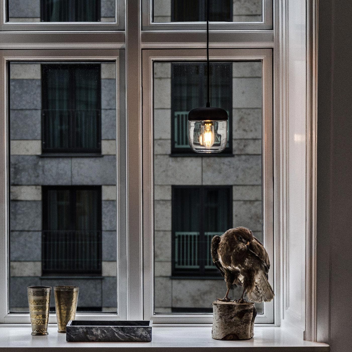 De lampenkap is in Scandinavië ontworpen door designer Soren Ravn Christensen. De prachtige geslaagde lampenkap geeft sprankelend en diffuus licht; Dat maakt de Acorn bijzonder flexibel en een perfecte sfeermaker in de hal, woonkamer of slaapkamer. De lamp is vervaardigd uit aluminium, glas en silicone. De hanglamp is zeer eenvoudig in elkaar te zetten, dankzij de duidelijke instructiehandleiding is de hanglamp binnen een mum van tijd geïnstalleerd.