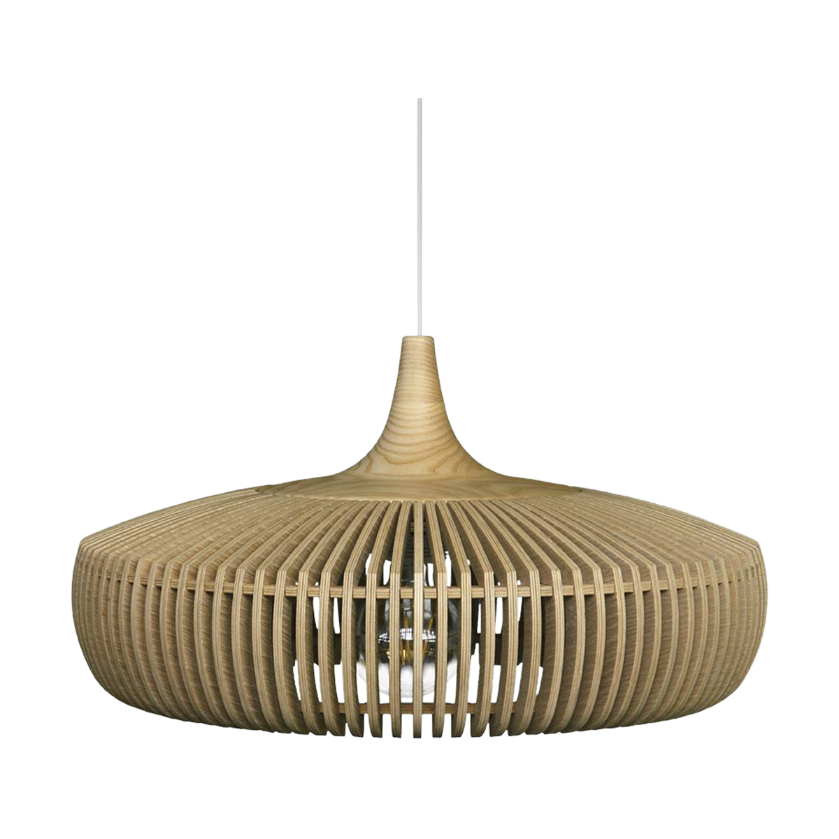 De Clava Dine Wood lampenkap is ontworpen vanuit een ambachtelijke techniek, die door de kleine afstand tussen elke lamel een unieke precisie en nauwkeurigheid vereist. De houten lamellen zijn gemaakt van laser gesneden essen en eiken fineer met een massief eiken blad. Met de Clava Dine Wood lampenkap creëer je een luxe uitstraling in je woonruimte. Dit ontwerp zorgt voor een mooi schaduw effect op de muren. De Clava Dine lamp is te combineren met een koordset met E27 fitting, deze is eenvoudig aan het plafond te bevestigen.