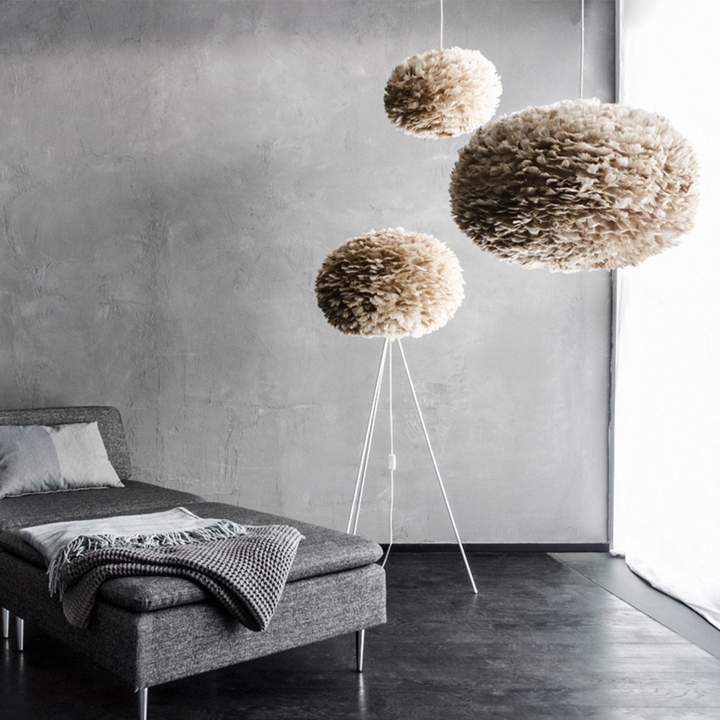 De prachtige Umage Eos vloerlamp Large heeft een modern design en is gemaakt van echte ganzenveren.