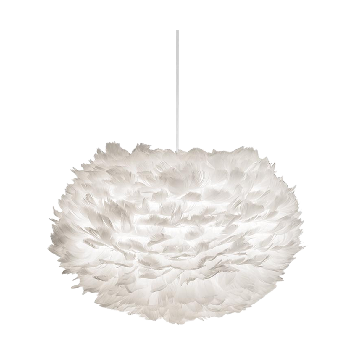 De hanglamp is gemaakt van echte ganzenveren. Bij wet is Umage verplicht, evenals andere grote retailers in de wereld, om te documenteren waar de ganzen en veren vandaan komen. Je kunt dus genieten van een prachtig lichteffect in je interieur, dat op milieuvriendelijke wijze tot stand is gebracht. Hang de lamp op in de slaapkamer, woonkamer of hal om direct sfeer te creëren. Bovendien onderhoud je de lamp goed door de lamp af en toe te föhnen, hierdoor blaas je gemakkelijk het stof van de veren en houd je ze luchtig!