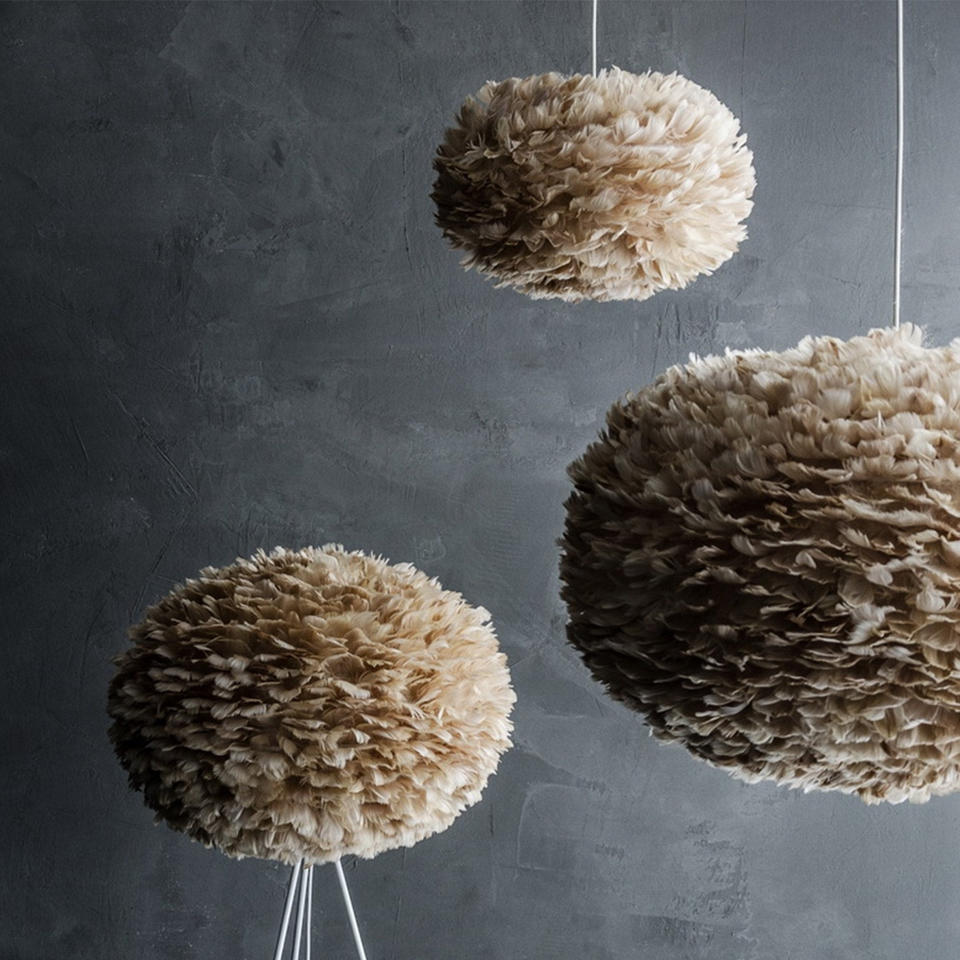 Umage Eos Medium vloerlamp light brown - met tripod zwart - Ø 45 cm