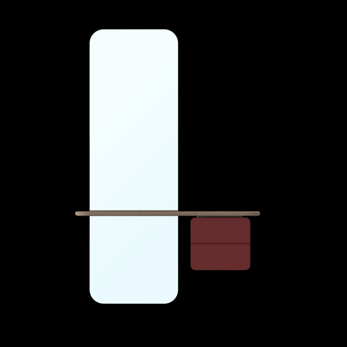 Het is niet alleen een spiegel, maar is veel meer dan dat. De spiegel is ontworpen om aan de muur op te hangen en wordt onder het midden gekruist door een massief houten plank waaraan een opbergkastje is bevestigd. In het opbergkastje zit een extra verwijderbare handspiegel en een extra plank. Deze prachtige wandspiegel is gemaakt van massief eikenhout en is afgewerkt met een opbergkastje. Het geheel heeft mooie afgeronde randen en rondingen, waardoor het een zachte, minimalistische uitstraling krijgt. Het deurtje van het opbergkastje is verkrijgbaar in meerdere kleuren, waardoor er altijd een kleur is die bij jouw stijl past. Bovendien biedt het geheel jou de mogelijkheid om al jouw spulletjes een mooi plekje te geven, waardoor je ze altijd bij de hand hebt wanneer je de deur uitgaat. Kortom, ben je op zoek naar een unieke spiegel, dan is de One More Look wandspiegel perfect voor jou!