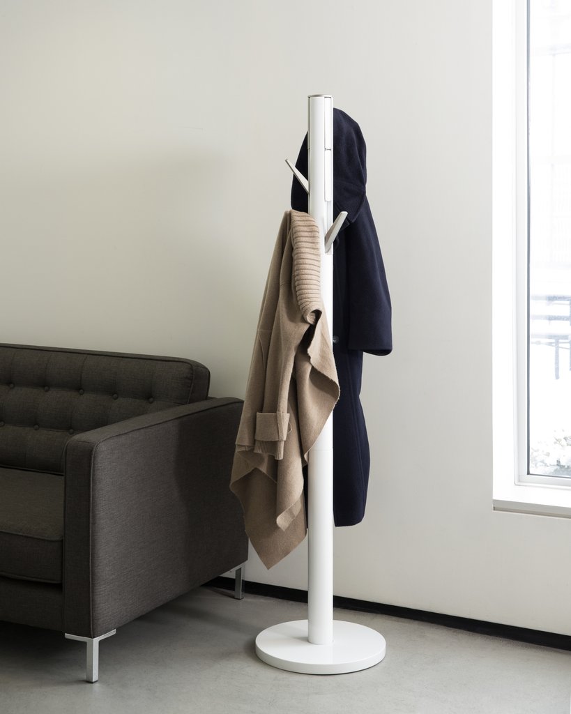 De haakjes klap je in en uit De ene keer hangen alle haakjes vol aan de kapstok en de andere keer hangt er bijna niets aan. De kunststof haken die niet worden gebruikt, worden gewoon ingeklapt. Een strak design met een zeer hoge functionaliteit. Hij wordt gedemonteerd geleverd en is eenvoudig in elkaar te zetten.