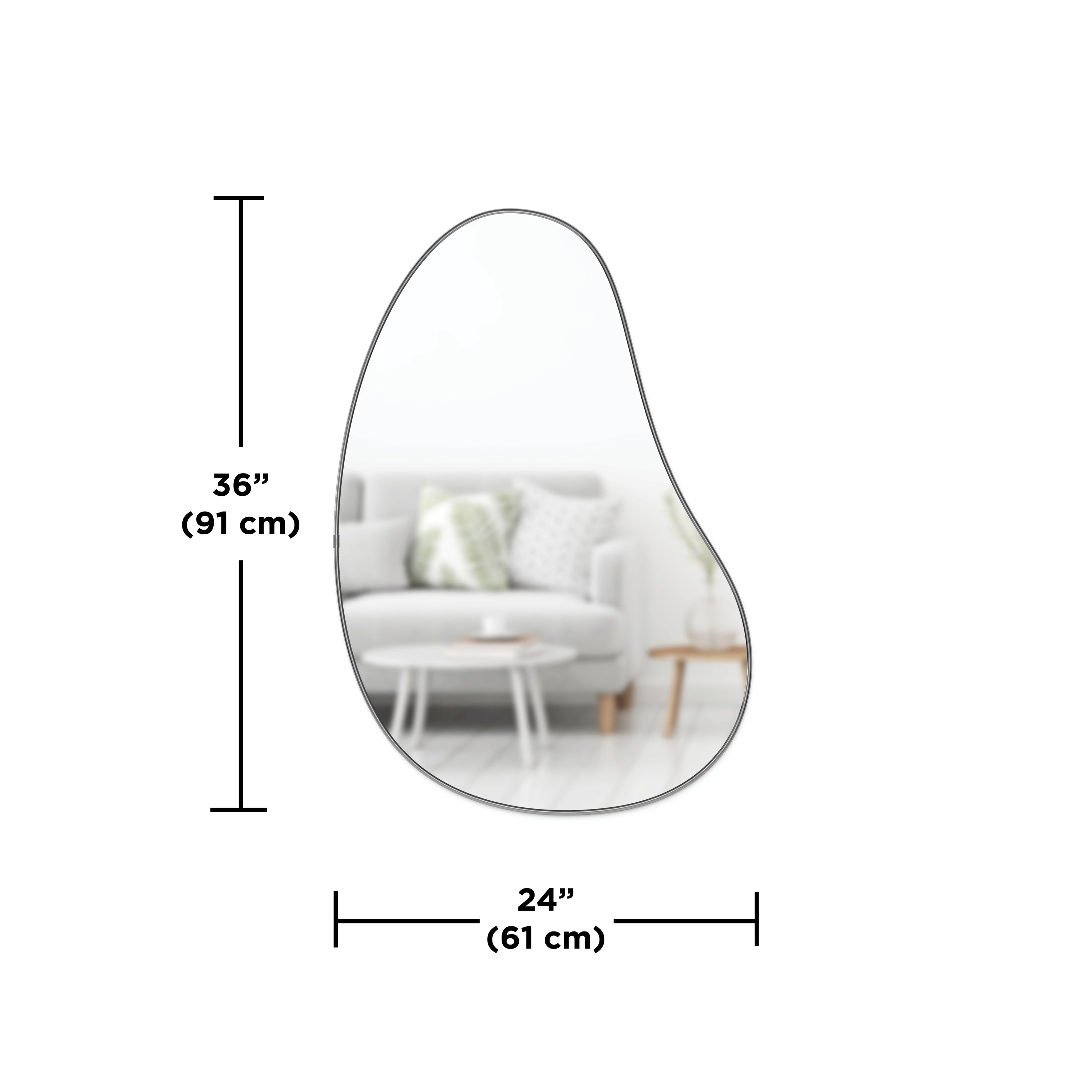 - De wandspiegel heeft een afmeting van H 61 x B 92 x D 3 cm