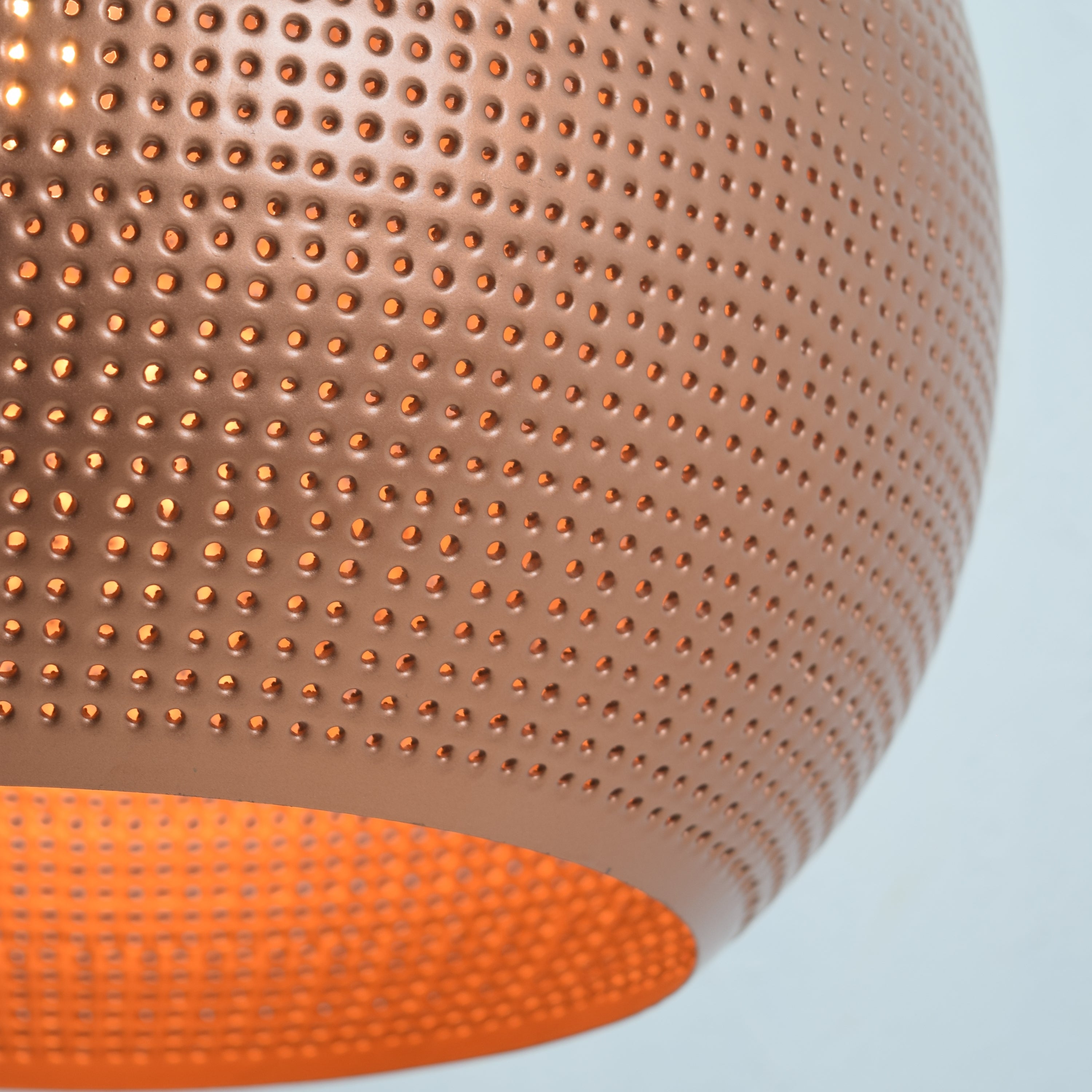 De Hanglamp Artisan XL is de grootste lamp uit onze hamerslag serie. Deze lampen passen zowel in een scandinavisch als in een industrieel interieur. Het oppervlakte van de lamp is voorzien van een hamerslag, dit geeft de lamp een unieke uitstraling. De binnenzijde van de lamp is koperkleurig, dit geeft een sfeervol licht wanner de lamp aan staat. Aan de kap zit een gestoffeerd snoer voor een luxe uitstraling. De hamerslag serie is leverbaar is zwart, glossy white en koper.