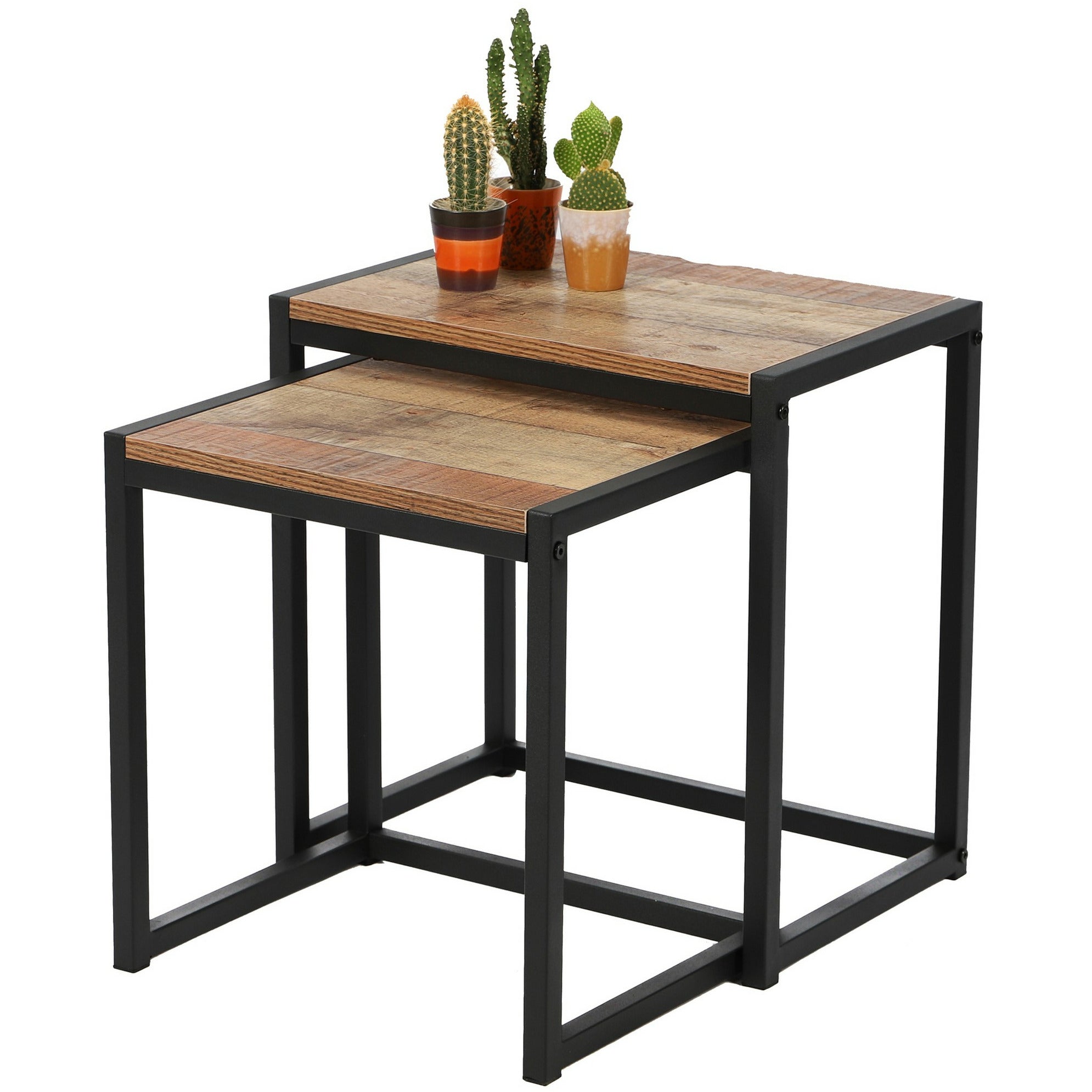 Bijzettafeltjes/planten standaard/verhogers set 2-delig zwart/donkerbruin metaal/mdf. Deze set bestaat uit 2 vierkante tafels. Afmetingen: L44 x B30 x H45 en L38 x B30 x H40 cm. Door deze formaten passen beide tafels makkelijk in elkaar, waardoor ze ook ingeschoven kunnen worden en het ruimte bespaart. Het onderstel van beide tafels is van metaal, het tafelblad is van MDF hout. Materiaal: metaal/MDF. U dient deze enkel zelf nog even eenvoudig te monteren. Merk: Urban Living.
