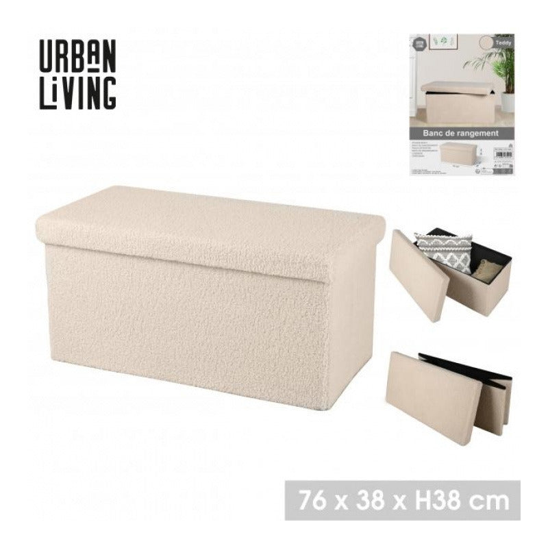 Urban Living poef|hocker|opbergbox - beige - mdf - 76 x 38 x 38 cm