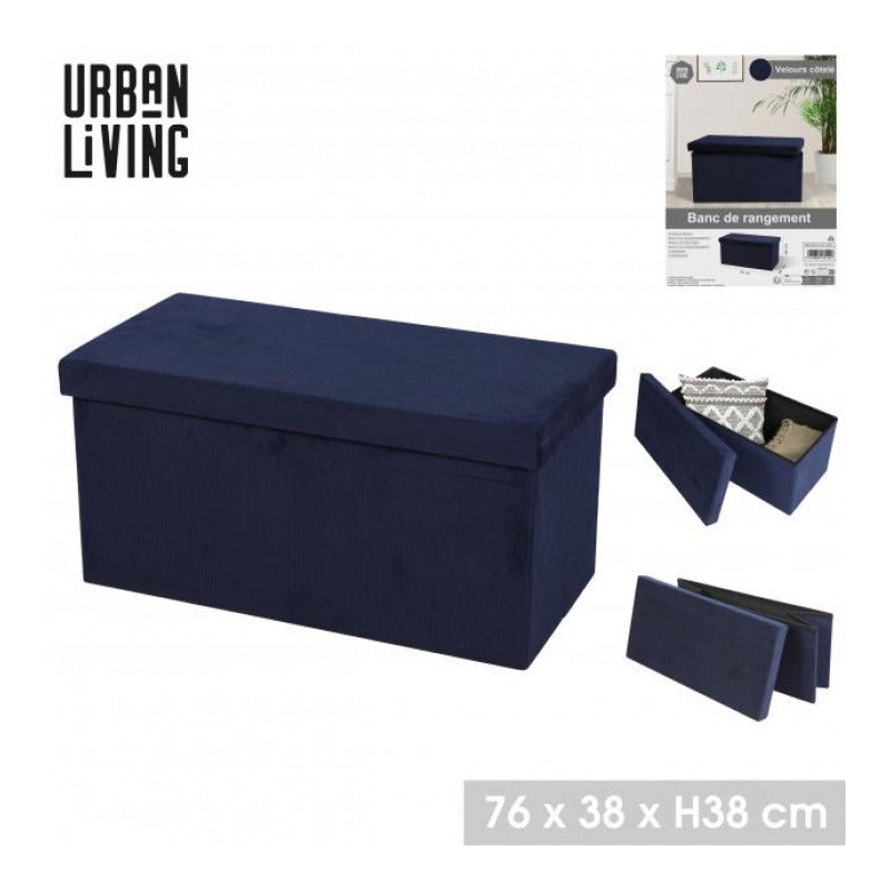 Urban Living poef|hocker|opbergbox - donkerblauw - mdf - 76 x 38 x 38