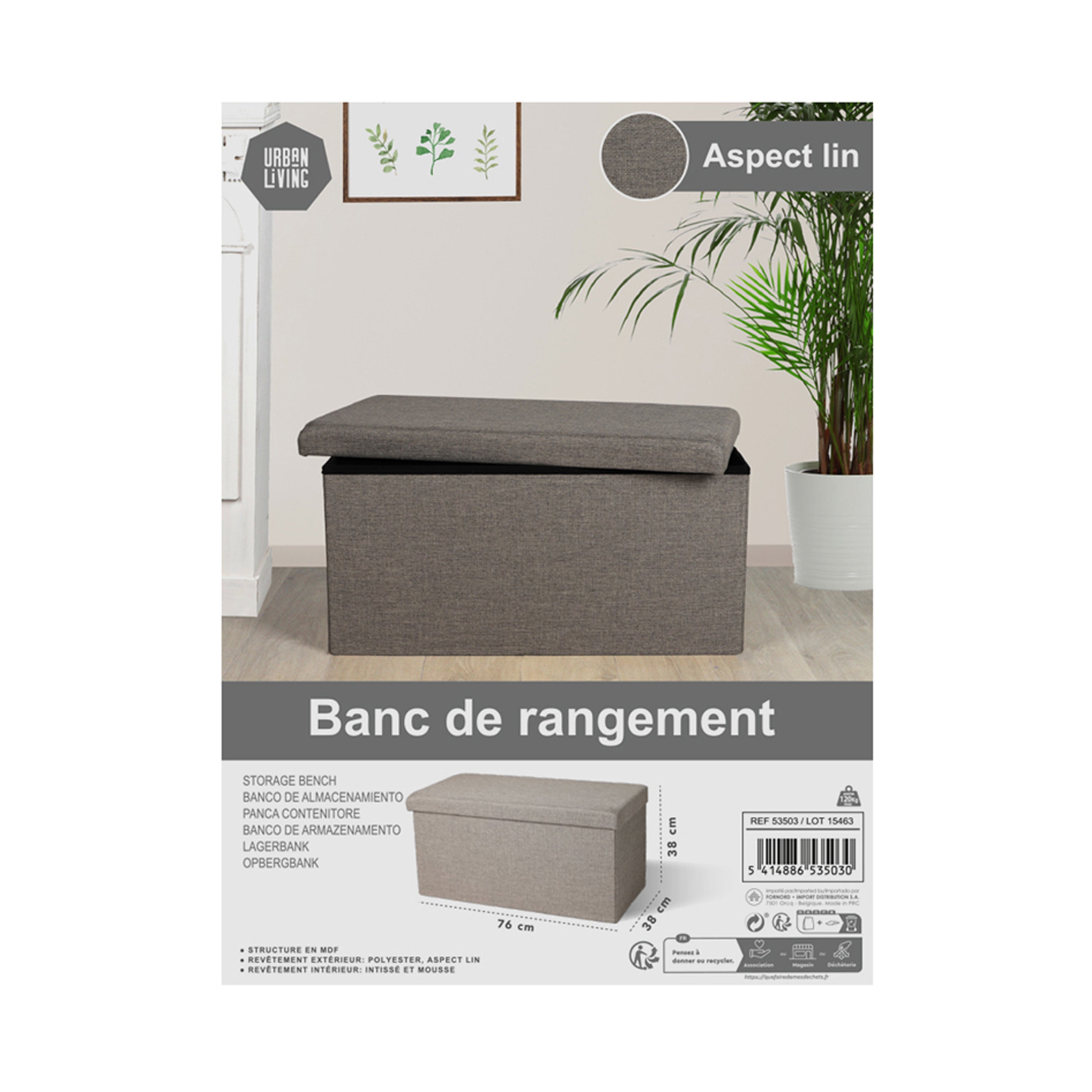 Urban Living poef|hocker|opbergbox - grijs - mdf - 76 x 38 x 38 cm