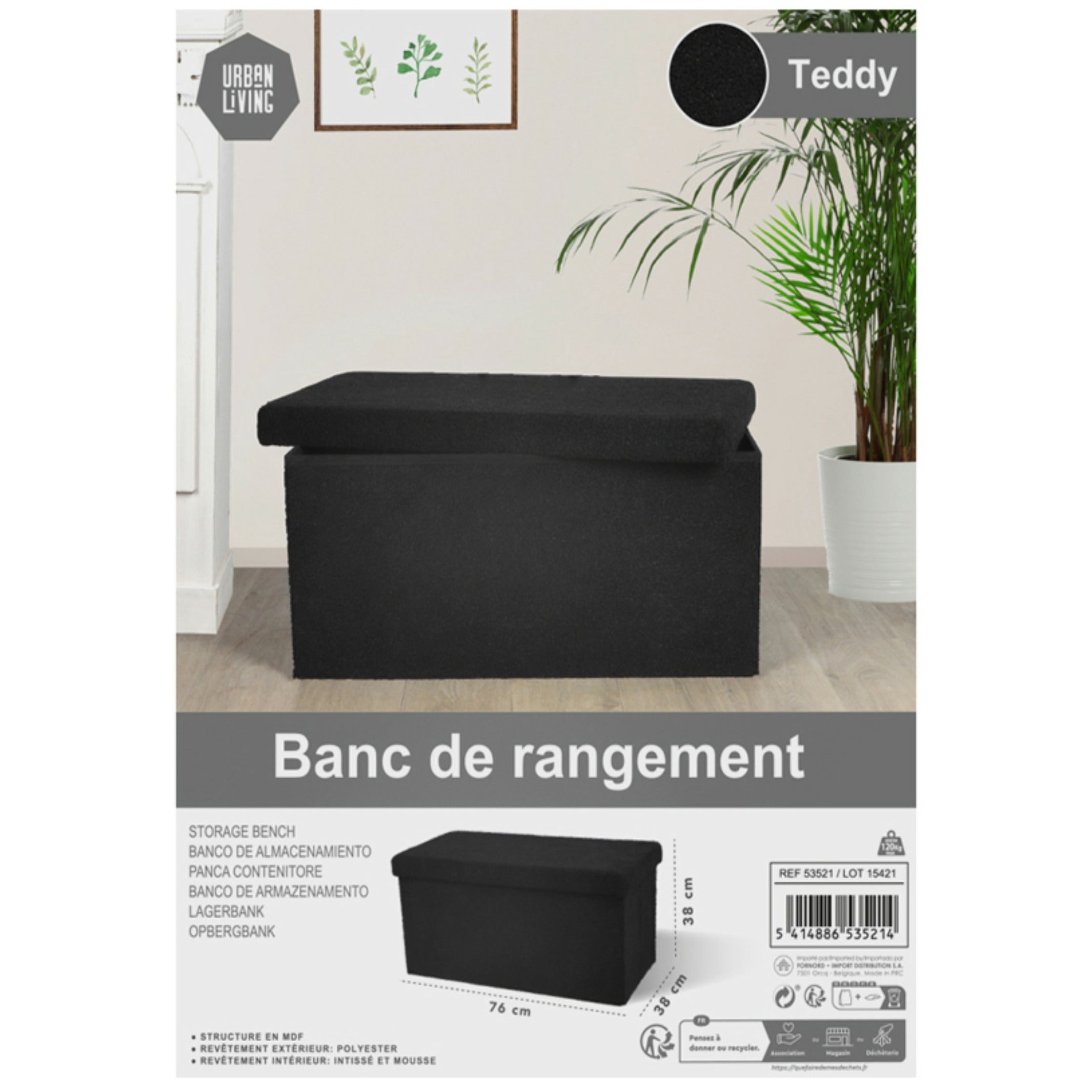 Urban Living poef|hocker|opbergbox - zwart - mdf - 76 x 38 x 38 cm