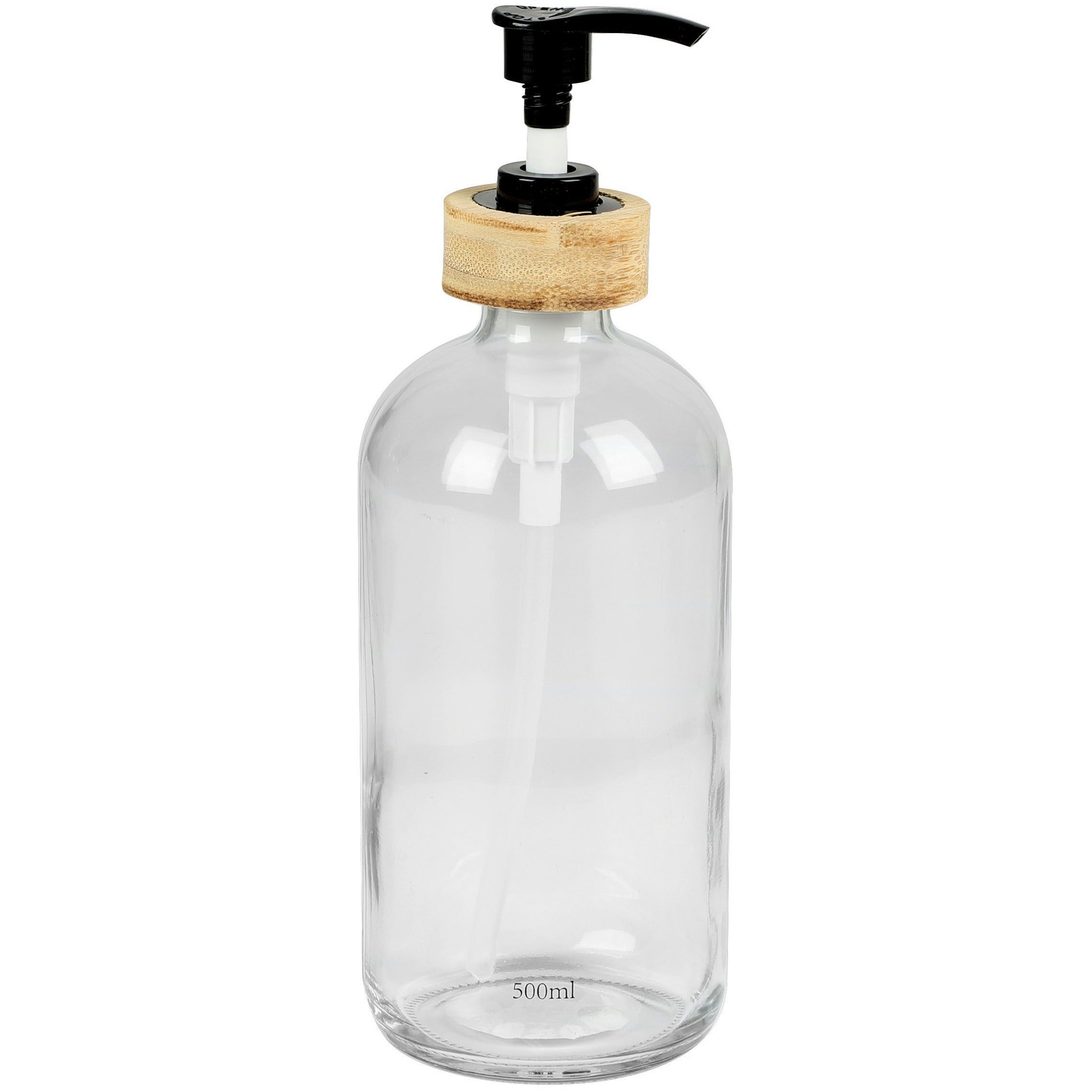 Urban Living zeeppompje/zeepdispenser van glas/kunststof/bamboe. Ideaal voor in de badkamer, keuken of het toilet. Afmetingen: ca. 7 x 21 cm. Inhoud: 0.5 liter. Stijlvol en praktisch tegelijk.